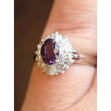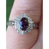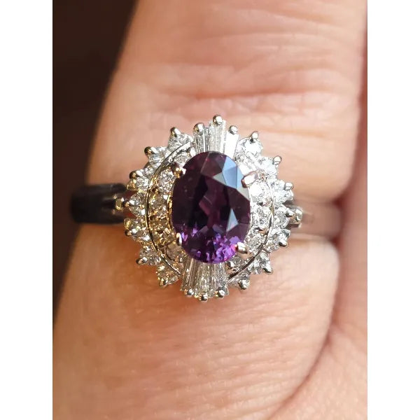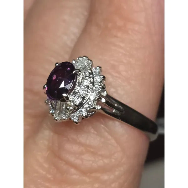 1.02 Ct Color Changing Garnet & Natural Diamond Ring In Platinum