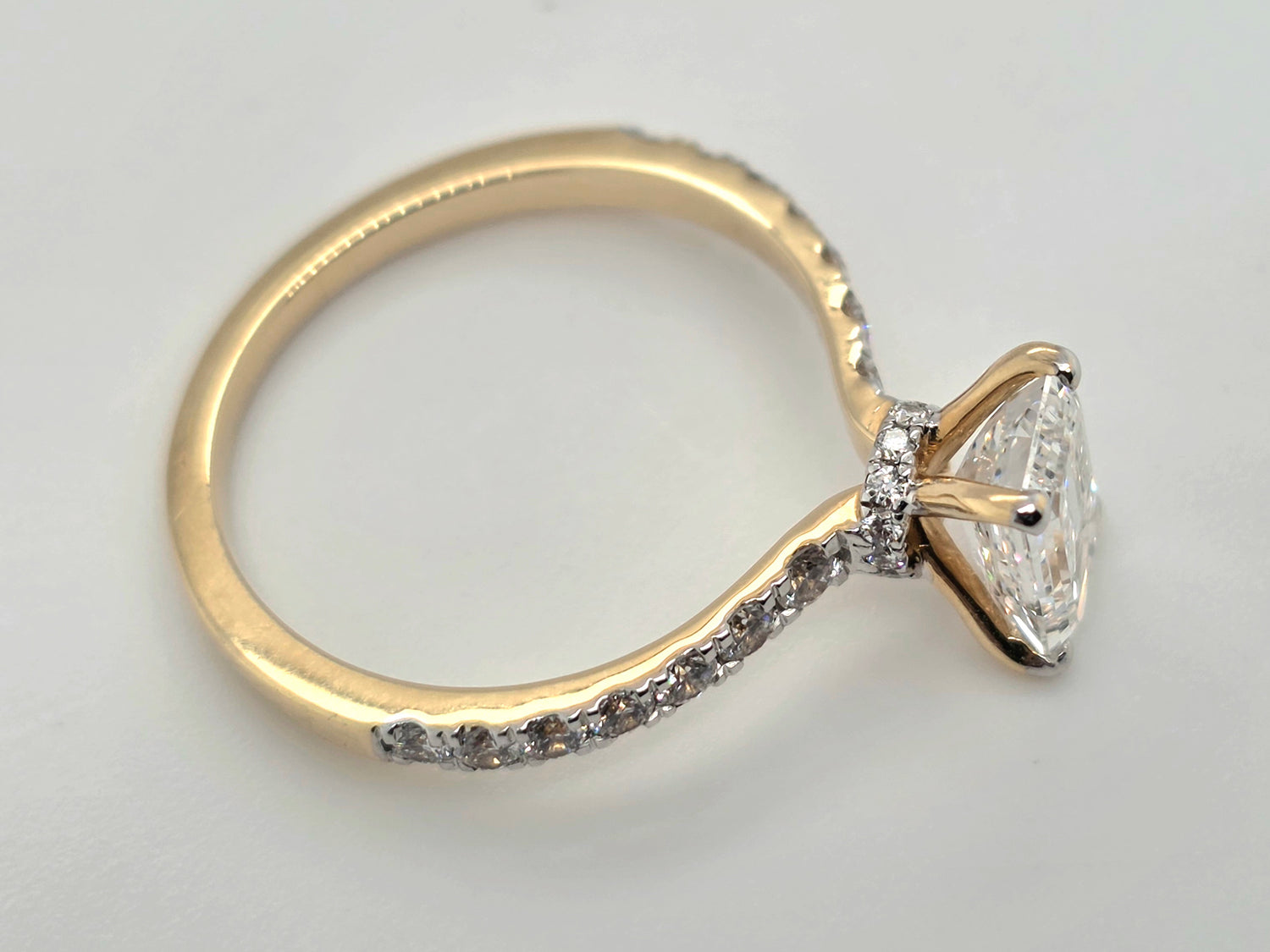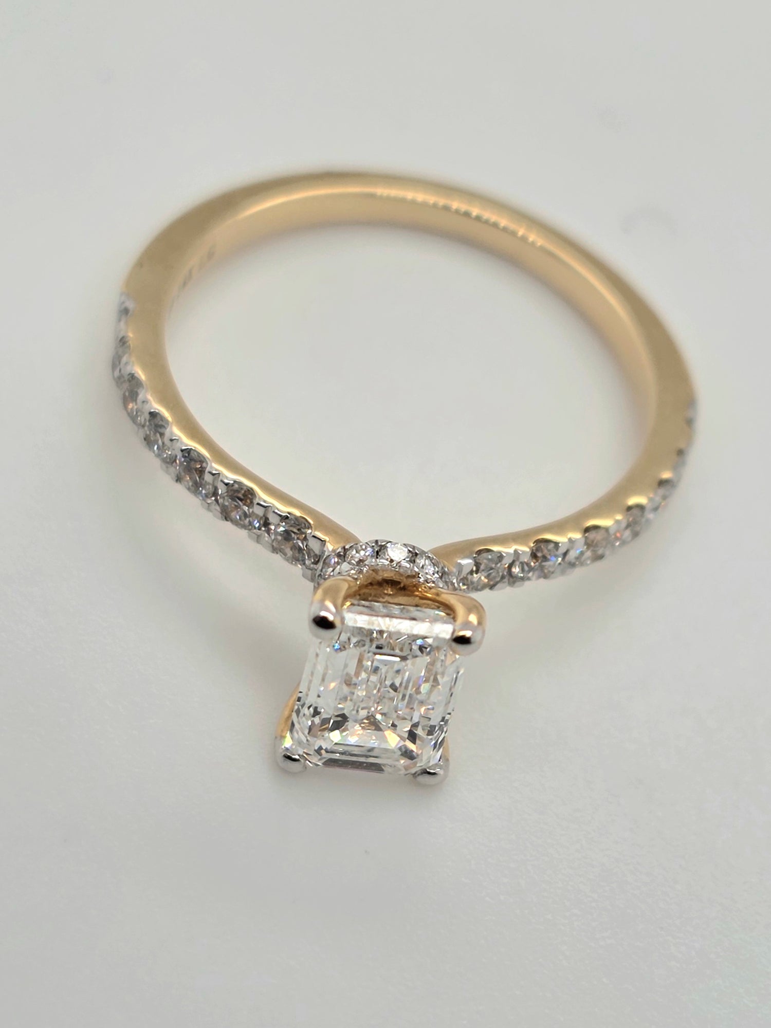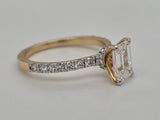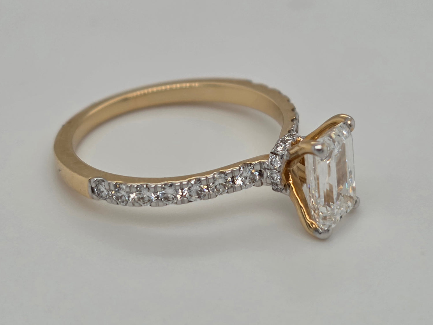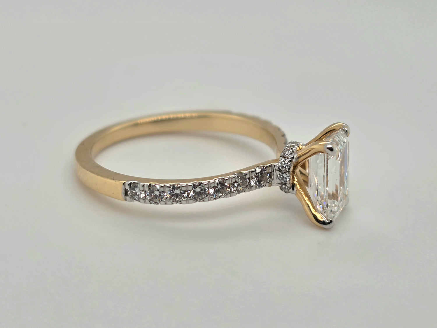 1.5ctw LAB diamond emerald cut hidden halo 14kt yellow gold ring