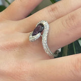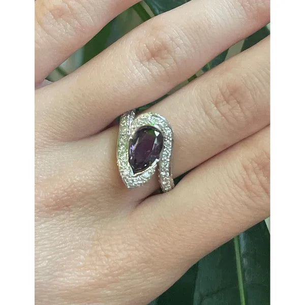 1.94 Ct Color- Changing Garnet Platinum Ring with Natural Diamond Accents