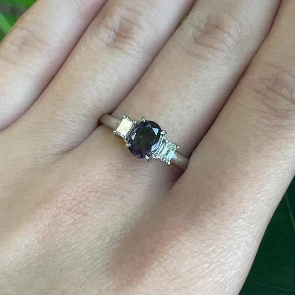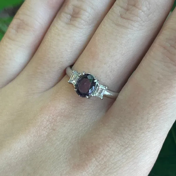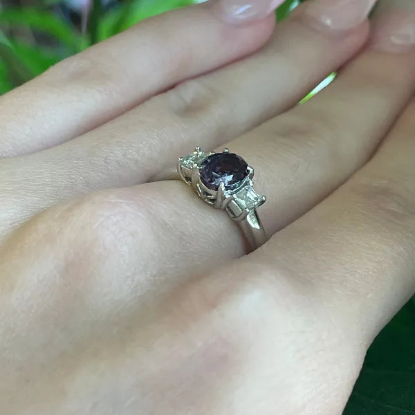 1 Ct Natural Color Changing Garnet & Natural Diamonds In Platinum Ring