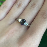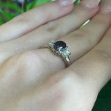 This 1 CT natural color-changing garnet dazzles with its rare ability to shift hues, beautifully complemented by sparkling natural diamonds. Set in luxurious platinum, this ring is a striking statement of elegance, rarity, and timeless sophistication. This ring is a size 10.5 but can be resized if needed, just drop us a note at checkout for a quote!