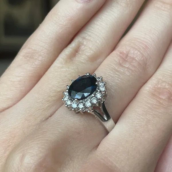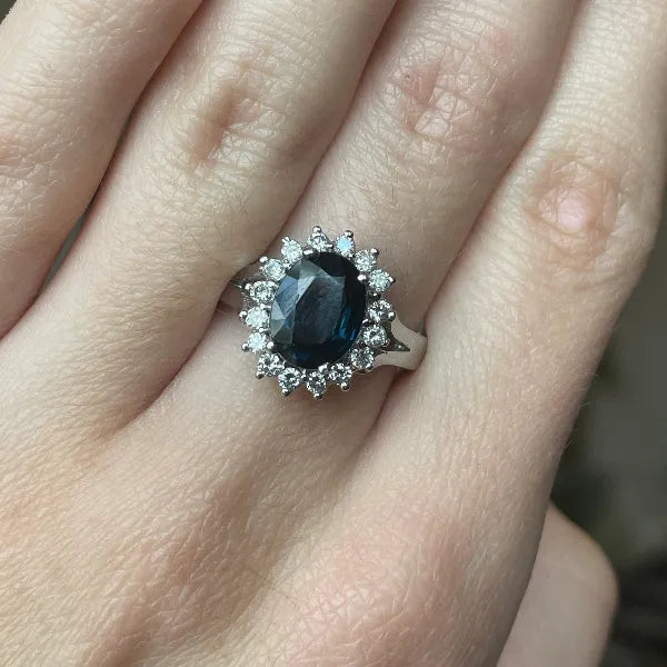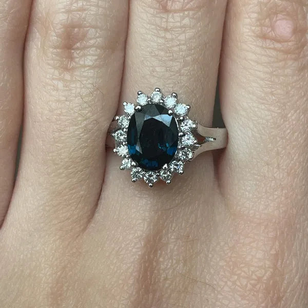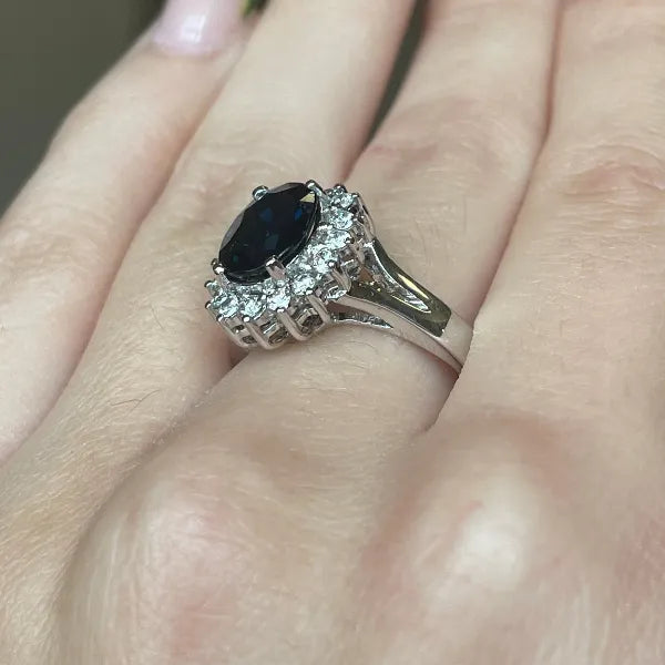 This elegant 14kt white gold ring features a captivating 2.2 Ct natural sapphire, accented with 1/4 Ctw of natural diamonds. The rich blue sapphire is beautifully complemented by the sparkling diamonds, creating a timeless and sophisticated design perfect for any occasion.