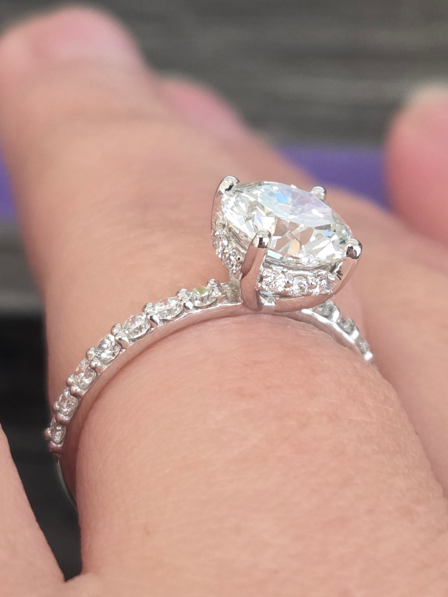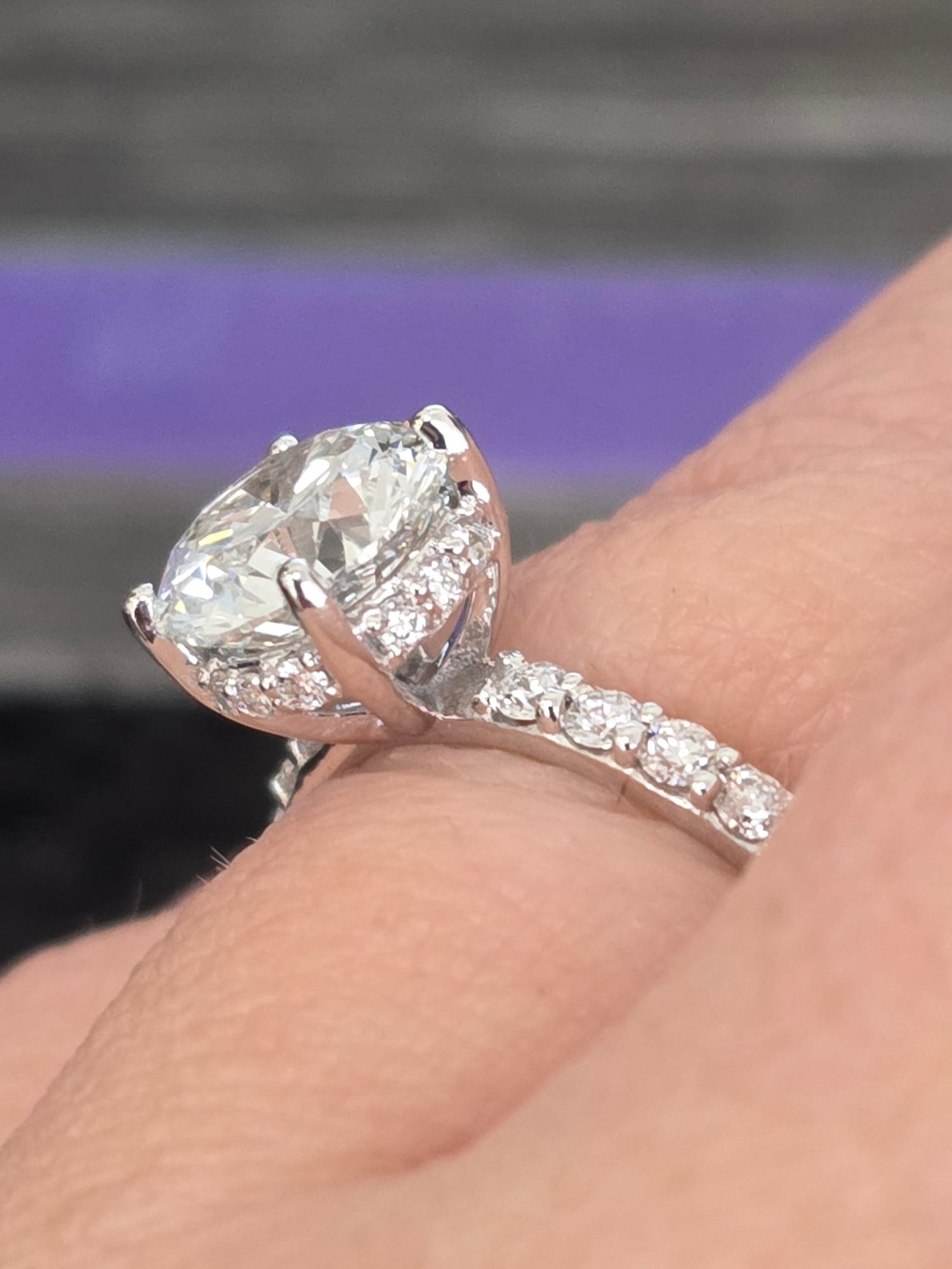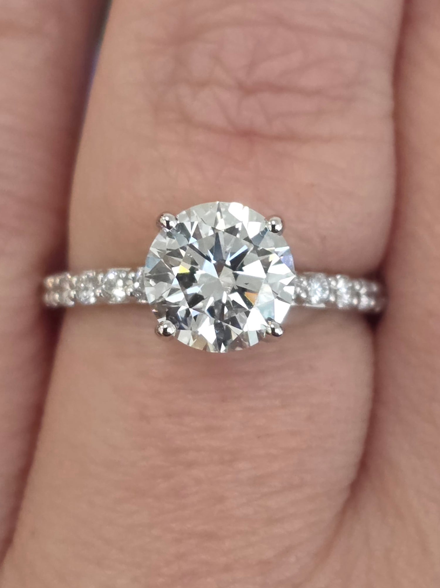 2.5ctw Lab diamond round brilliant ring with hidden halo w/IGI report. Center is 2.02ct E vs1.