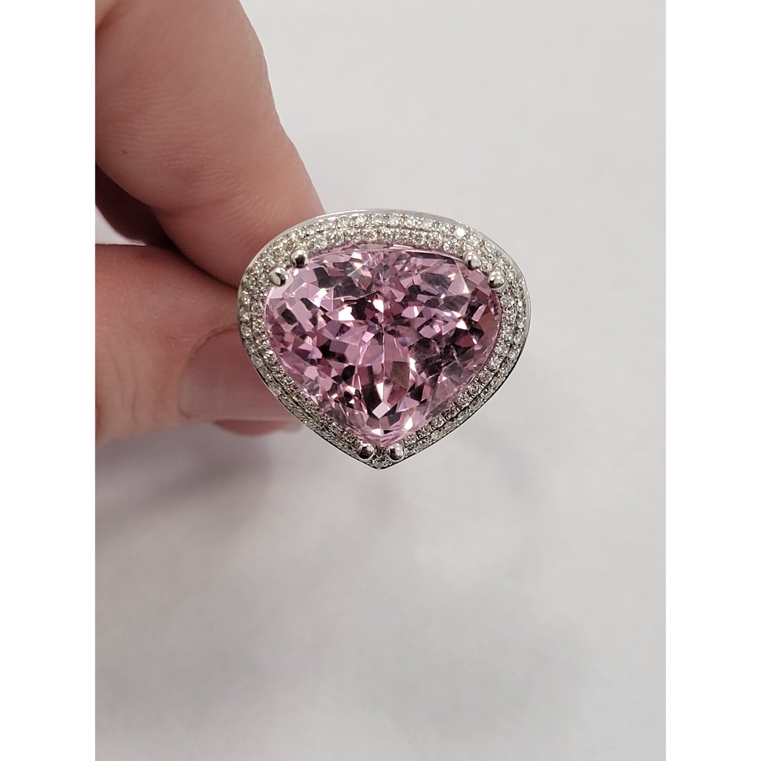 Stunning 20ctw kunzite ring accented with 1ctw diamonds, set in 14kt white gold, size 9.5 for a bold, elegant statement.