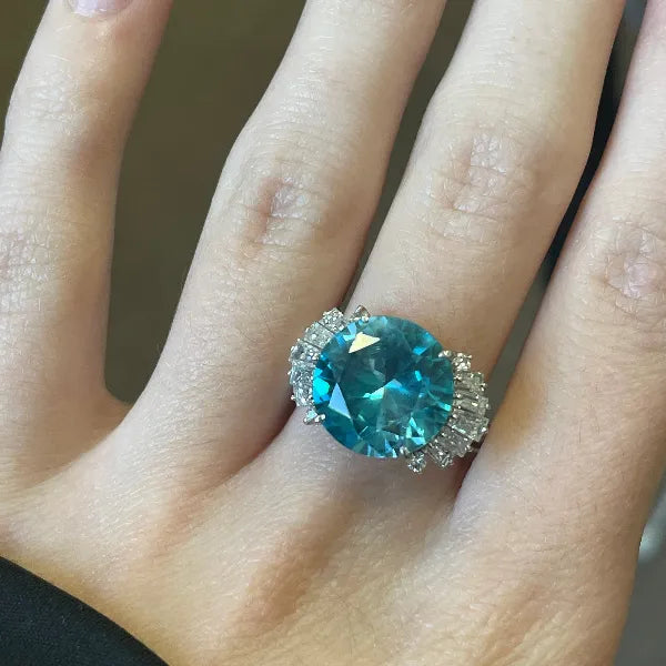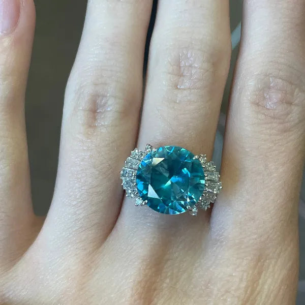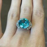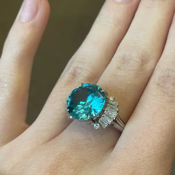 This striking 8ct zircon is beautifully complemented by 0.88ctw of natural diamonds, all set in a luxurious platinum ring setting. This ring is a size 6 3/4 but can be resized if needed, just drop us a note at checkout for a quote!