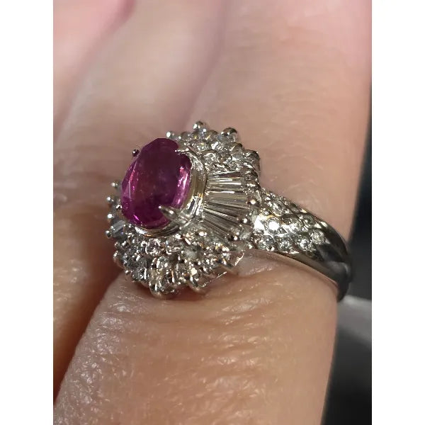 Natural Pink Sapphire 2.18 Ct With 1.13 Ctw Diamond Accents In Platinum