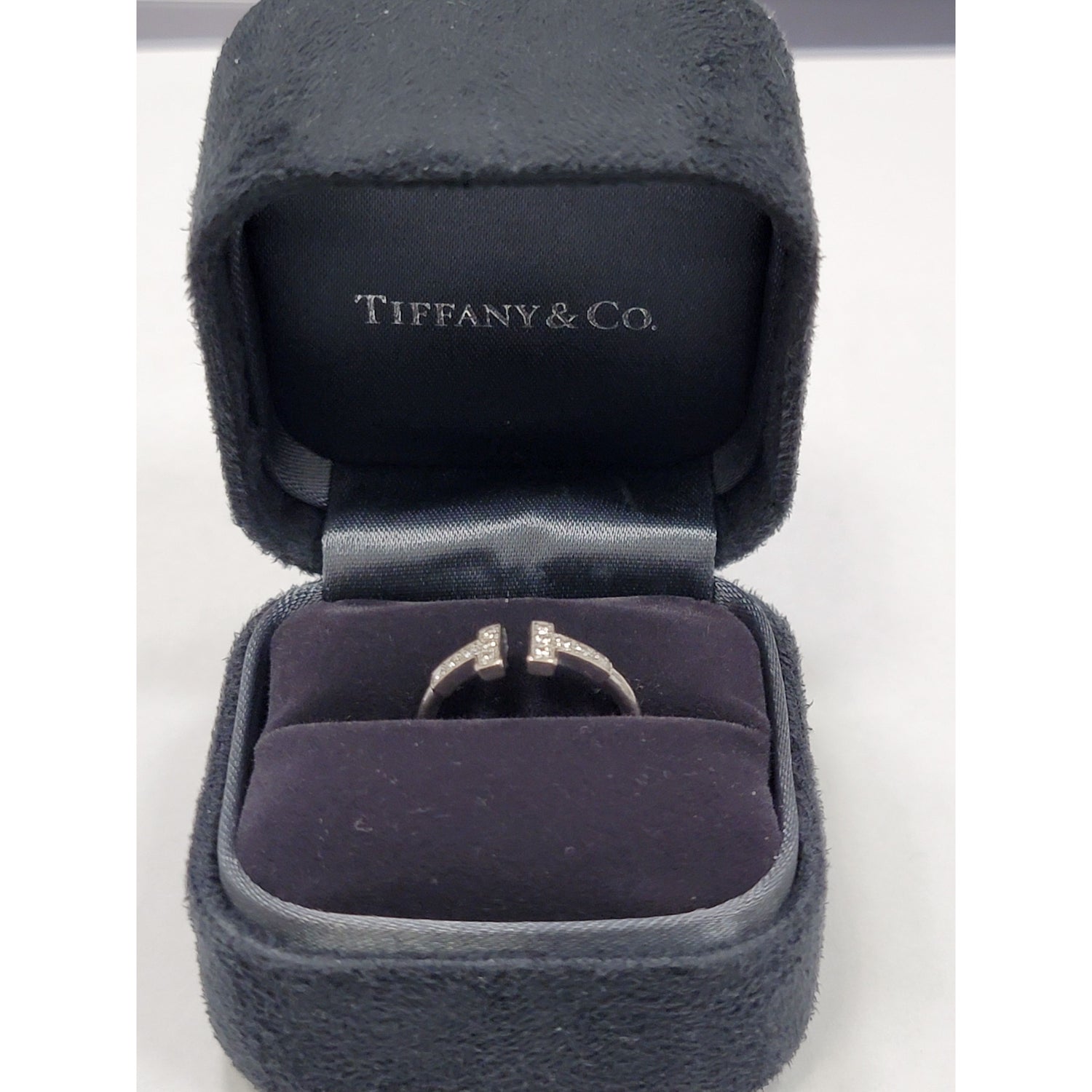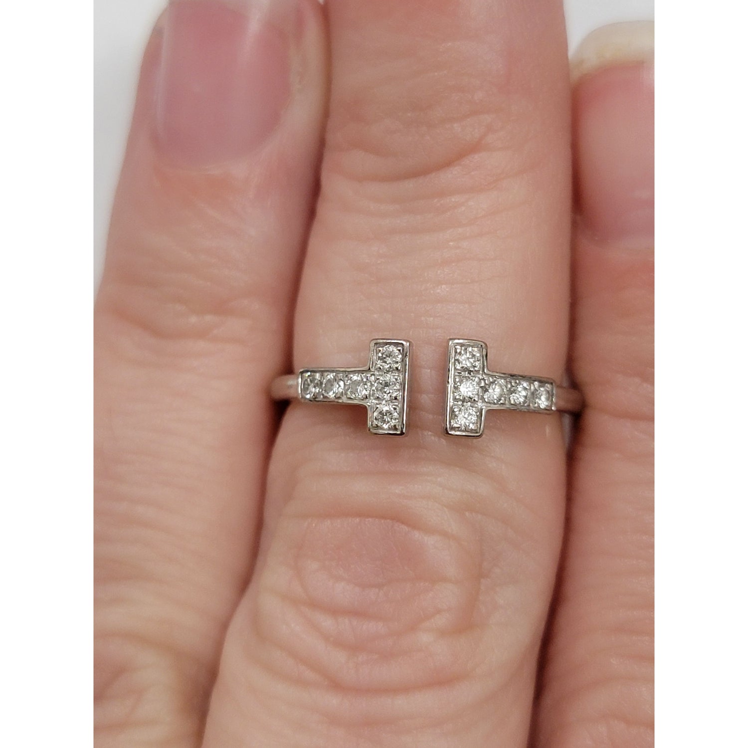 Tiffany & CO T Wire 18kt White Gold Diamond Ring size 5.5
