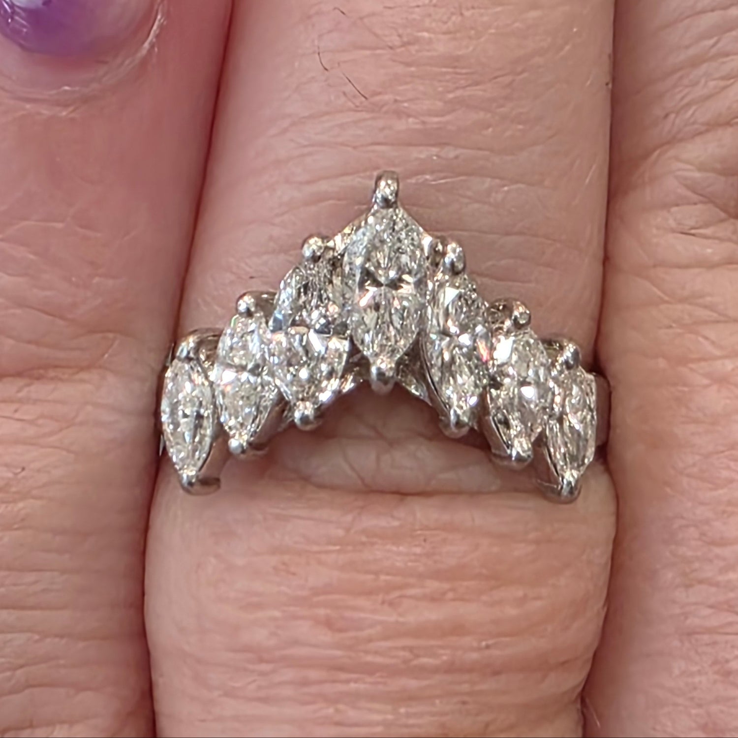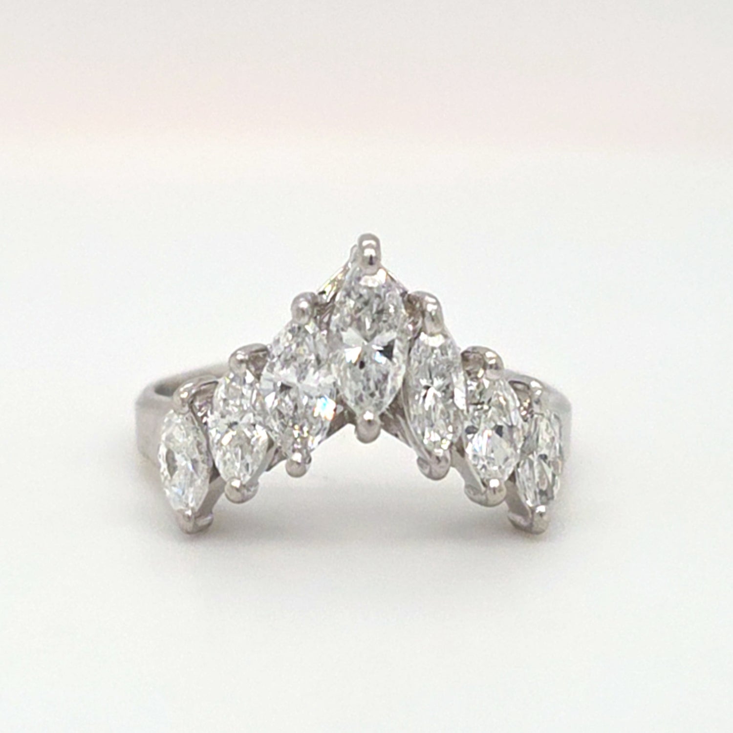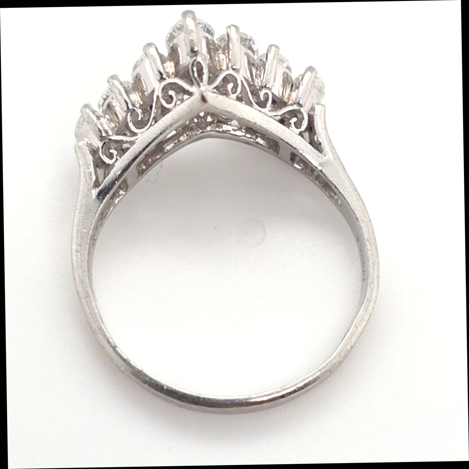 Stunning vintage estate ring crafted in platinum, showcasing 1.02ctw of natural diamonds in an elegant graduated design. The classic silhouette highlights brilliant sparkle with timeless appeal. Ring size 5.5.