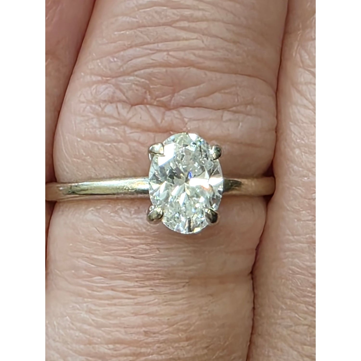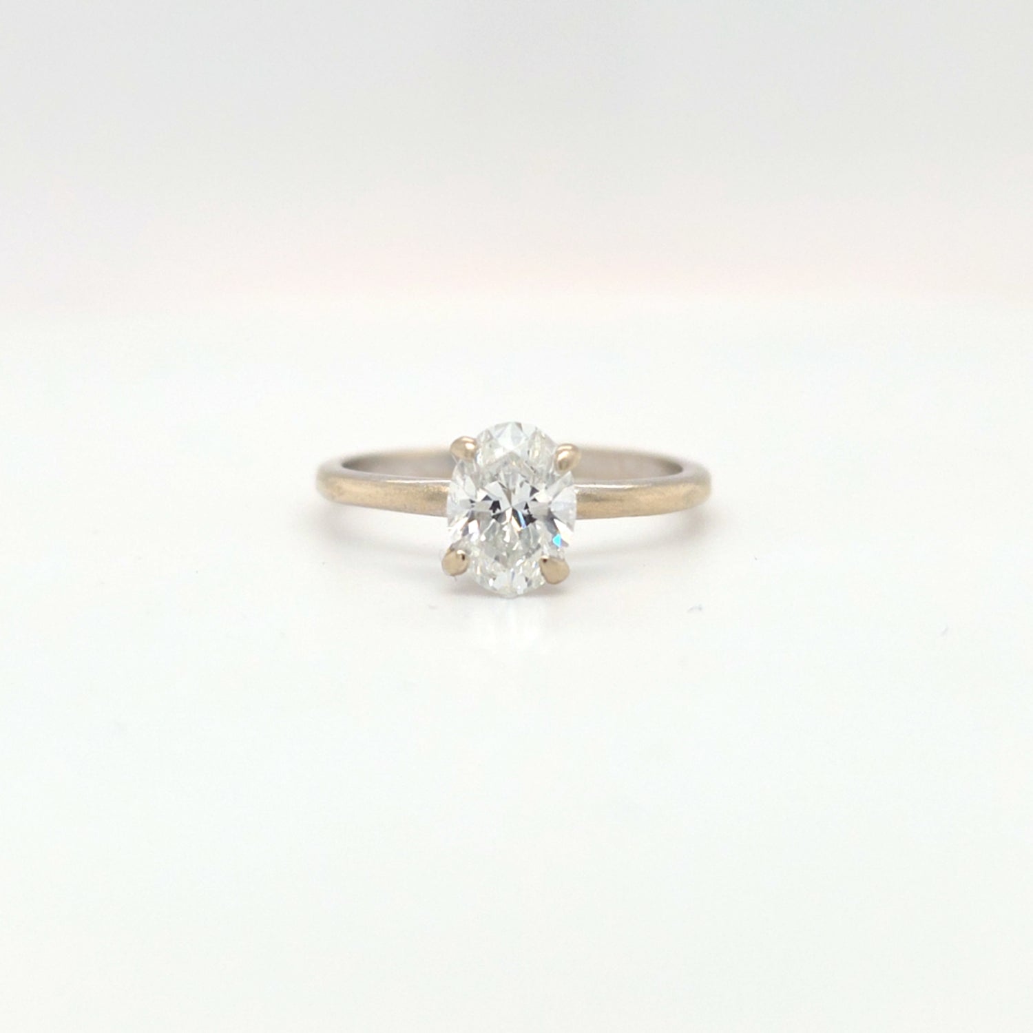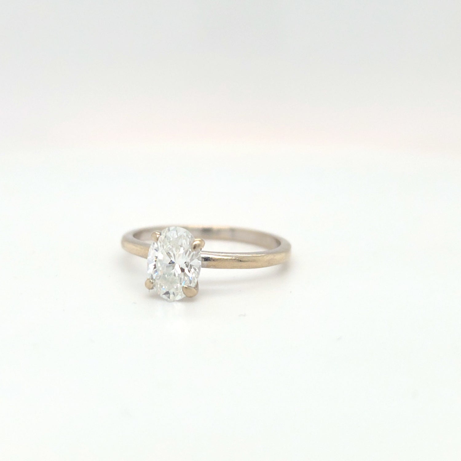 This stunning oval lab-grown diamond ring features a brilliant 1.07ctw stone set in sleek 14K white gold. Graded E color, SI1 clarity, and accompanied by an IGI report and appraisal, this size 7.5 ring delivers timeless sparkle with a modern, conscious edge.