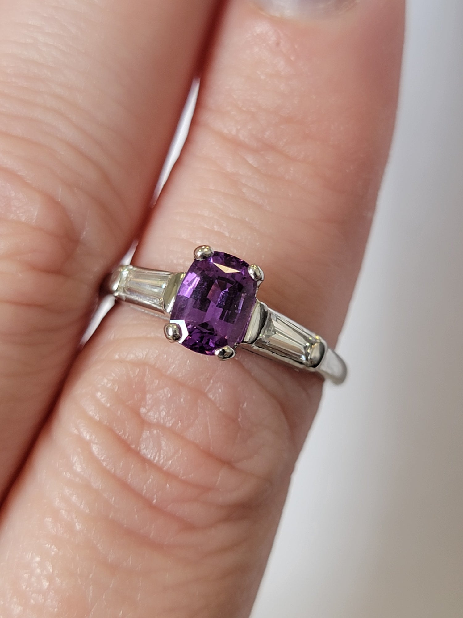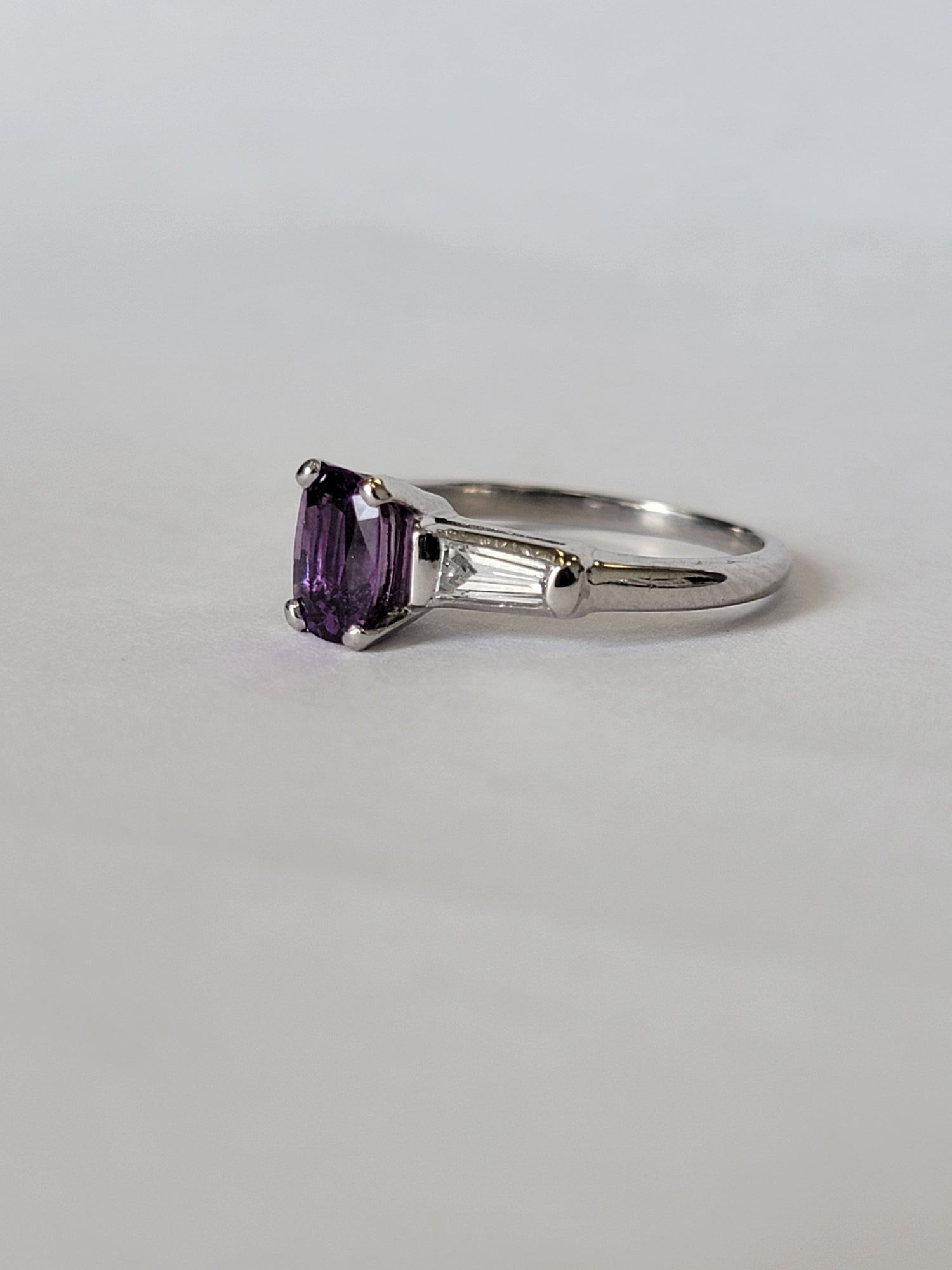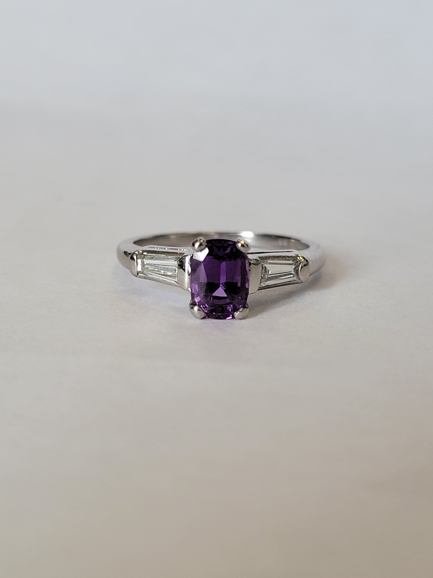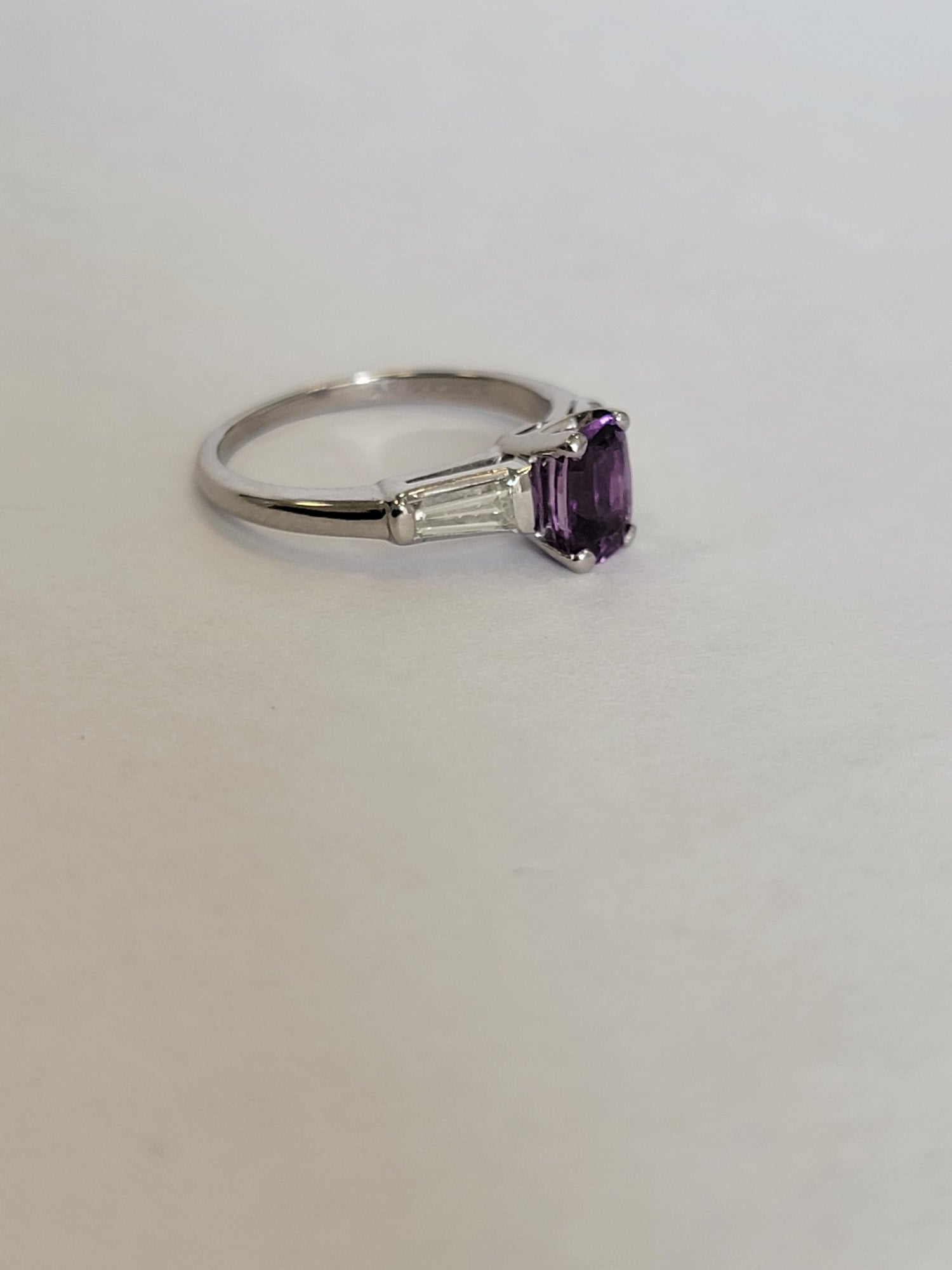 1.13 Natural Purple Sapphire With .30ctw Accent Diamonds In Platinum Size 6