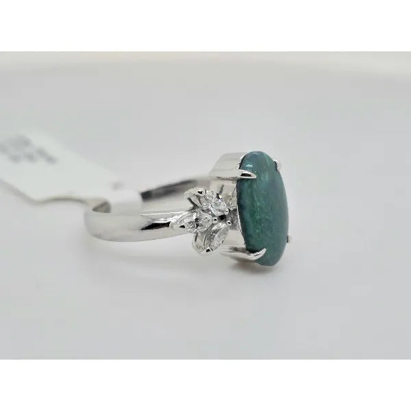 1.57ct oval black opal & .43ctw natural diamond ring in 18kt white gold