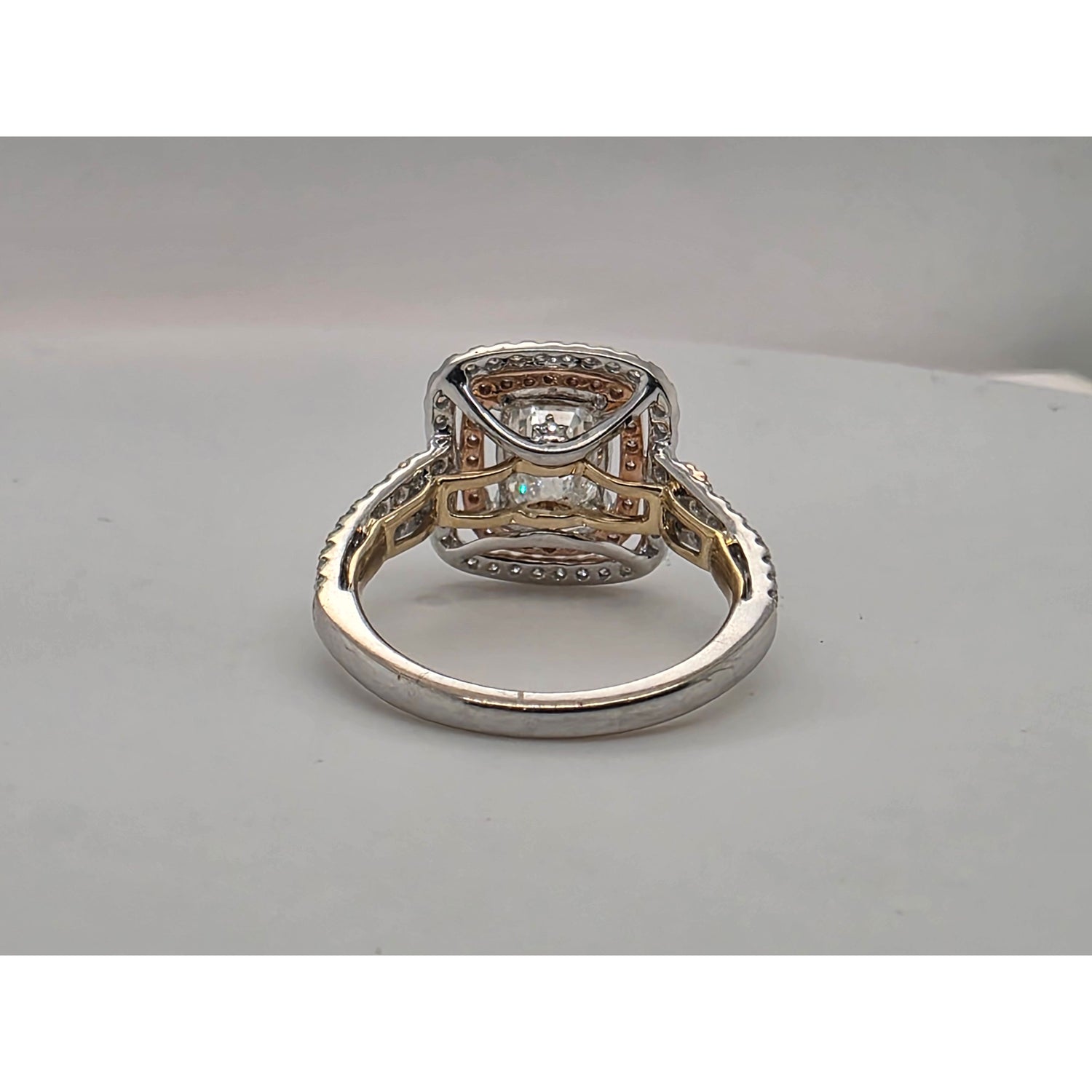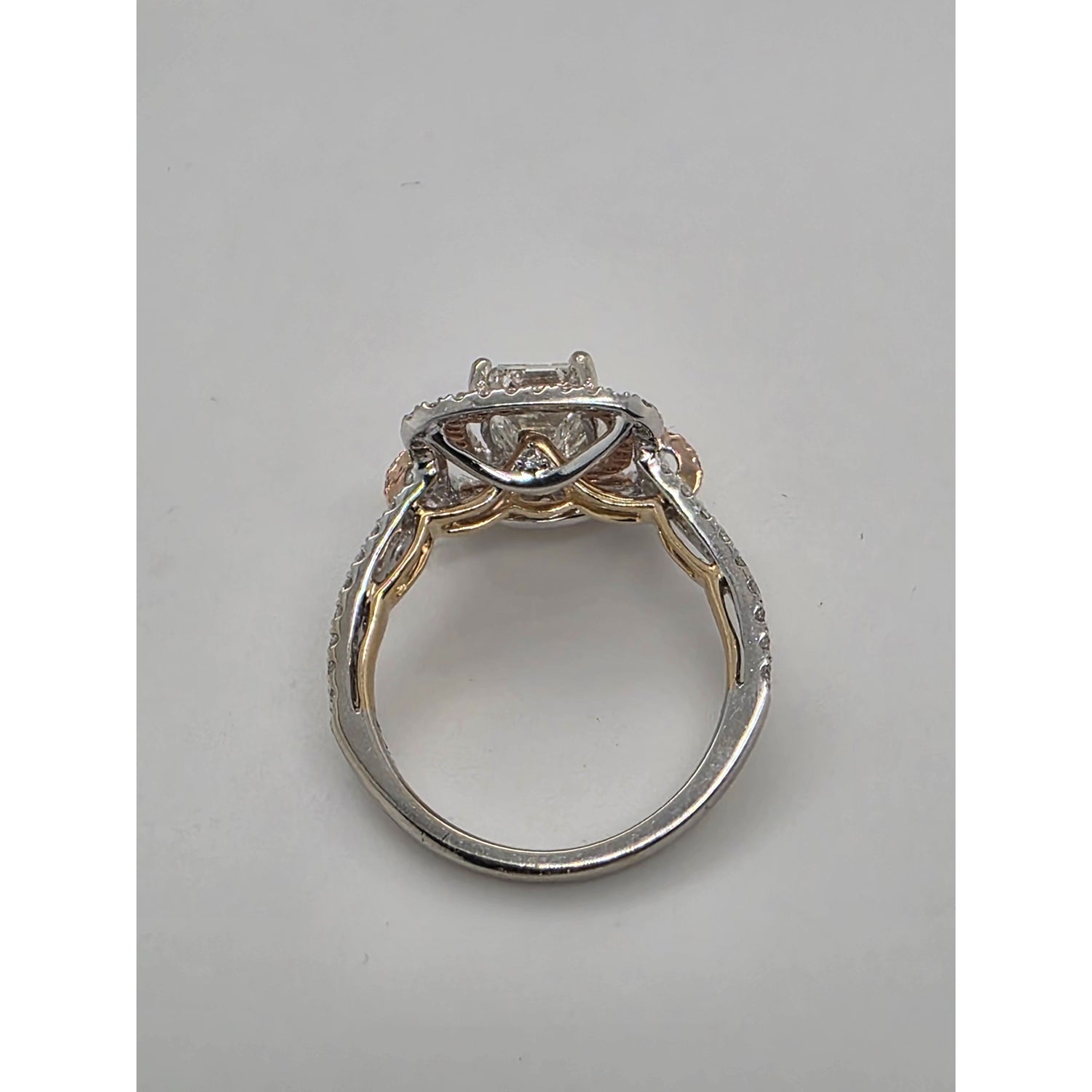 1.57ctw (G/VS2) Emerald Cut Natural Diamond In 14kt Two-toned Gold With .15ctw Pink Diamond & .25 White Diamond Accents Size 7.25