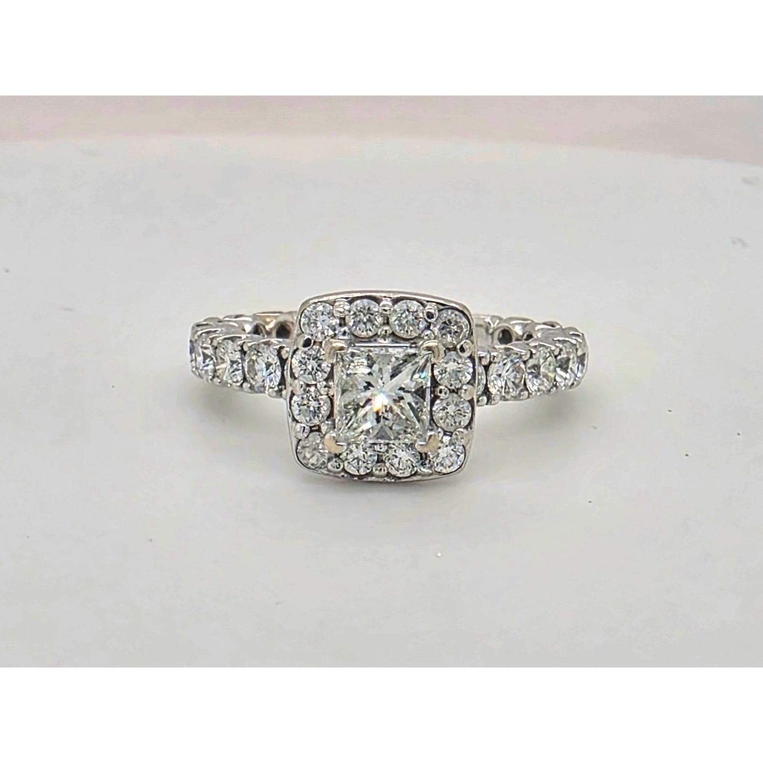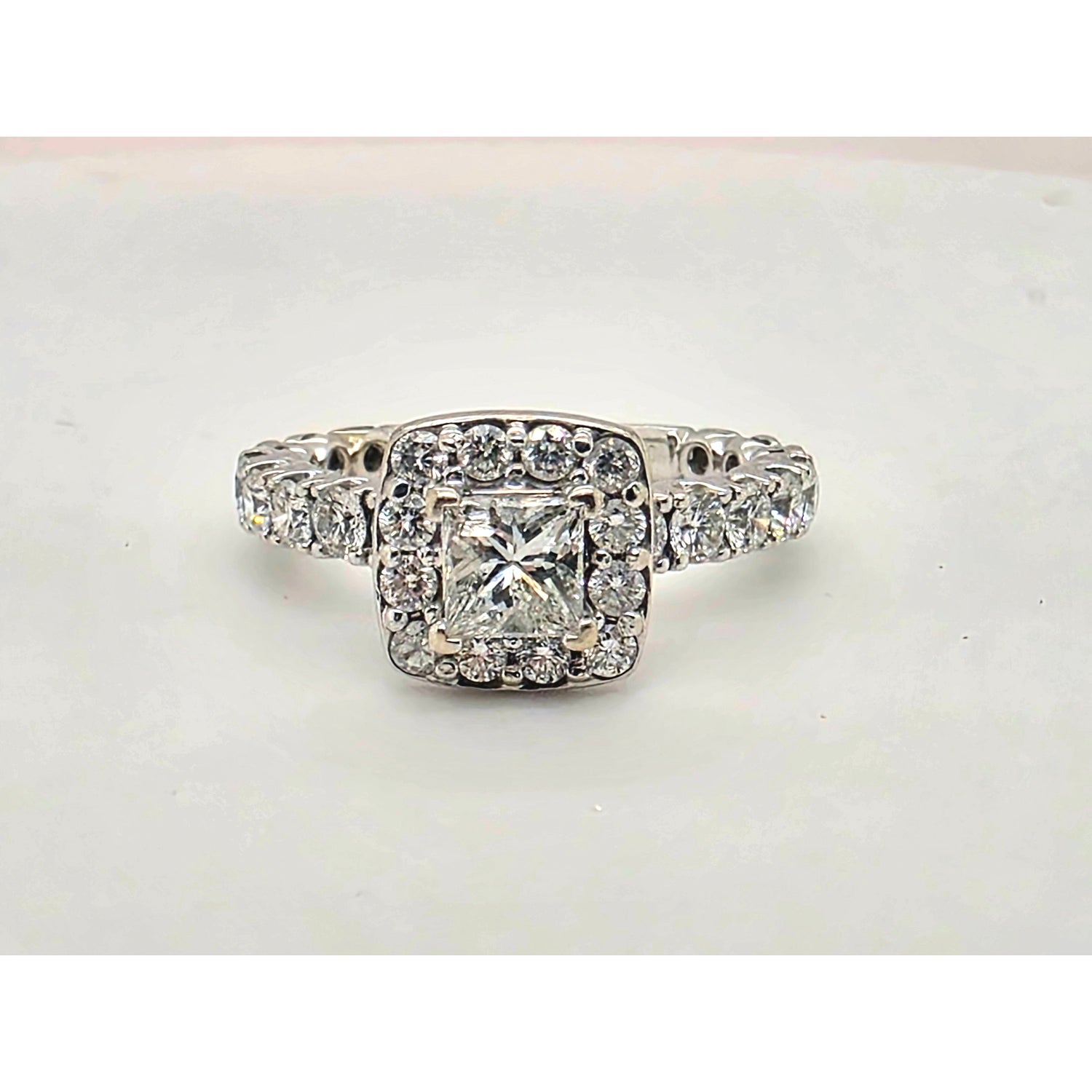 Make a statement with this beautiful 1.50ctw natural diamond ring, featuring a .55ct center diamond surrounded by an impressive 1ctw of sparkling accent diamonds. Set in sleek 14kt white gold, the design offers brilliant shine and eye-catching presence from every angle. A bold and elegant piece perfect for celebrating a special moment or adding luxury to any jewelry collection.