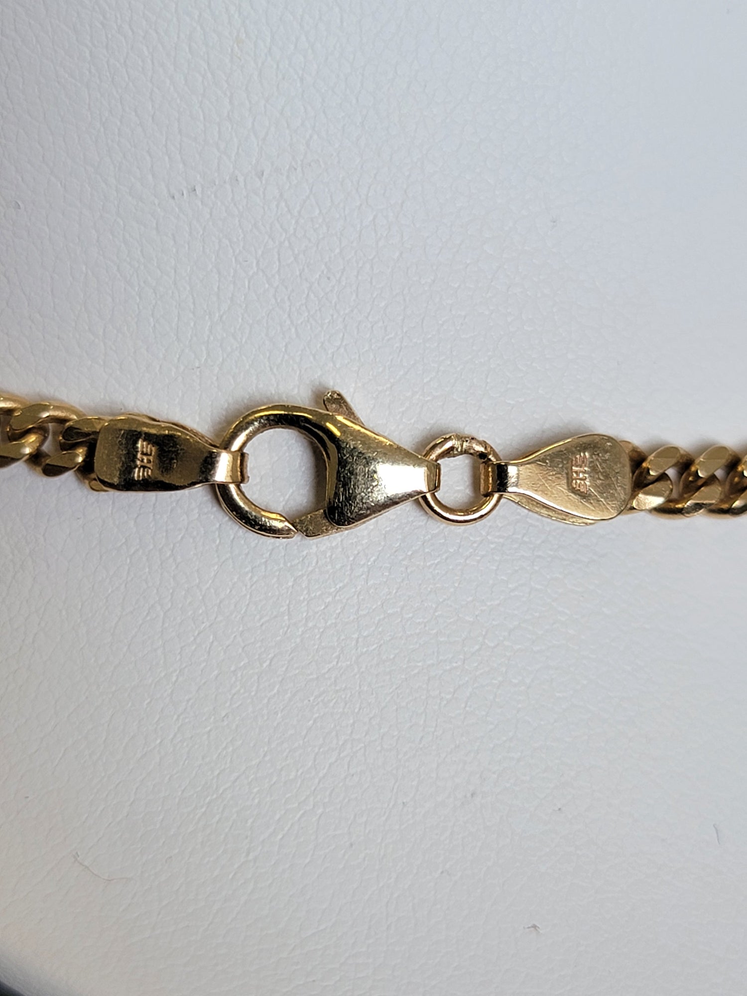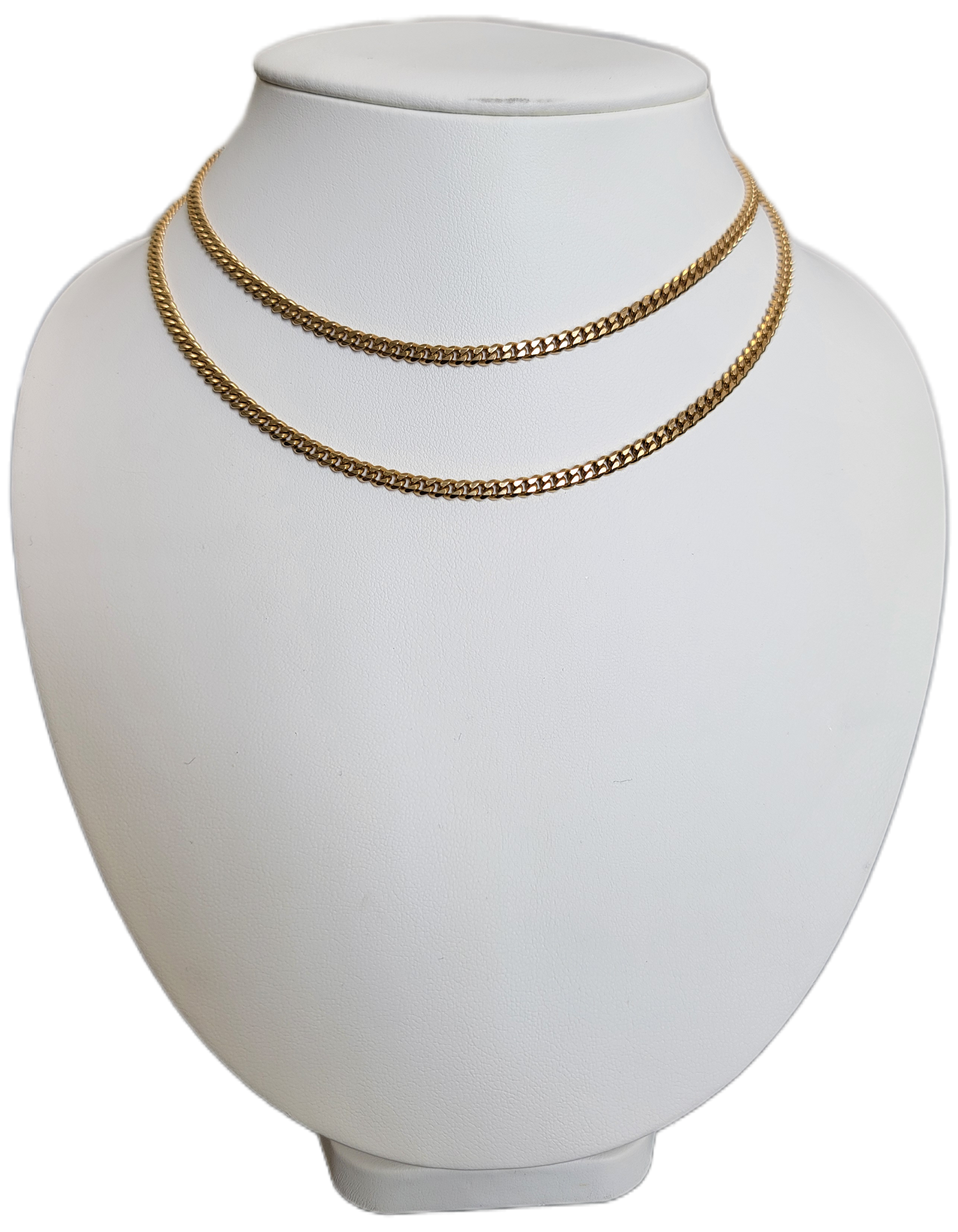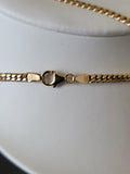 This substantial 14kt gold chain measures 30 inches long and 3.5mm wide, offering a bold yet timeless look. Weighing 27.69 grams, it has a luxurious feel with impressive presence and durability. Perfect for wearing solo or layering with your favorite pendant for added impact.