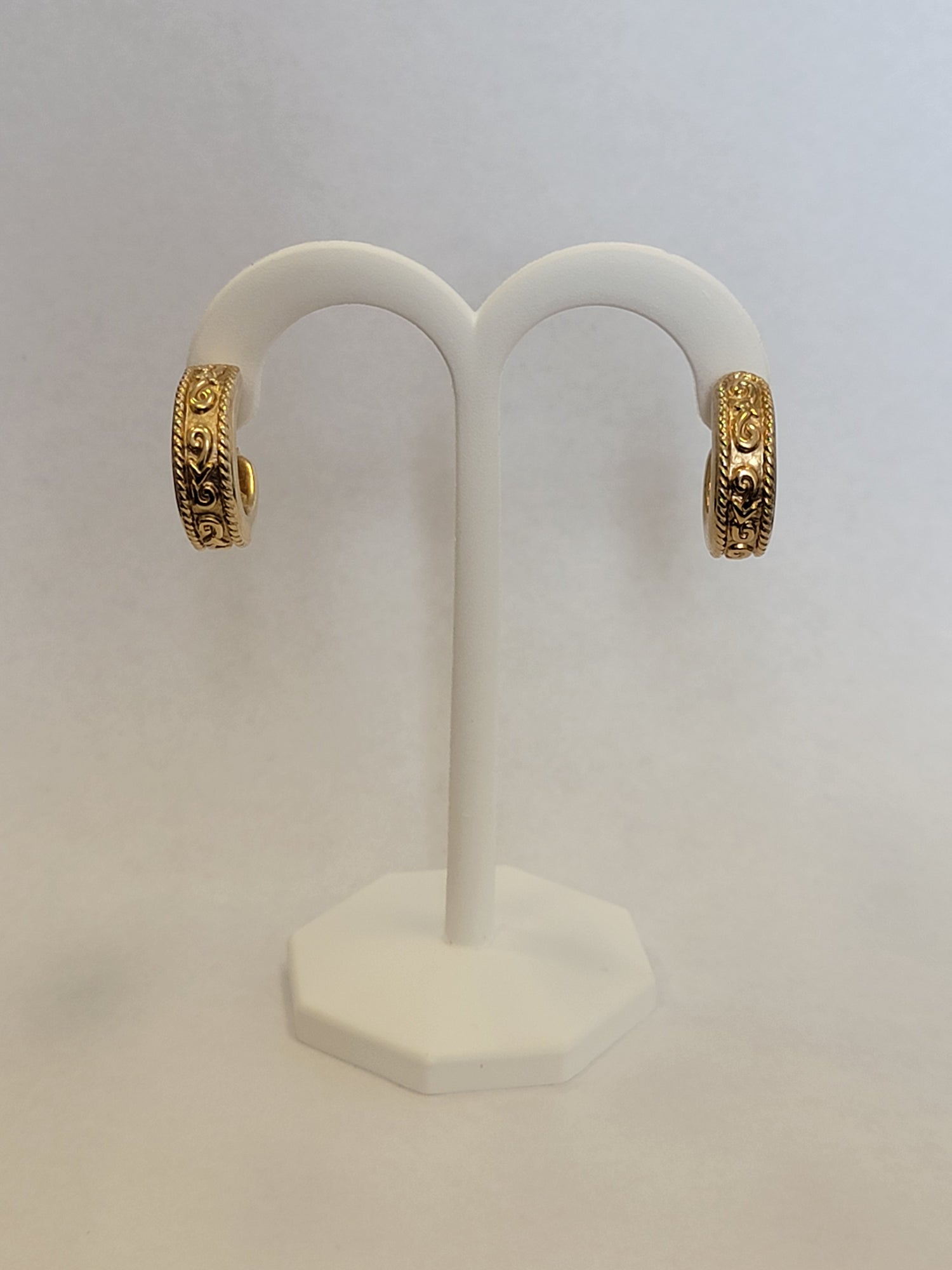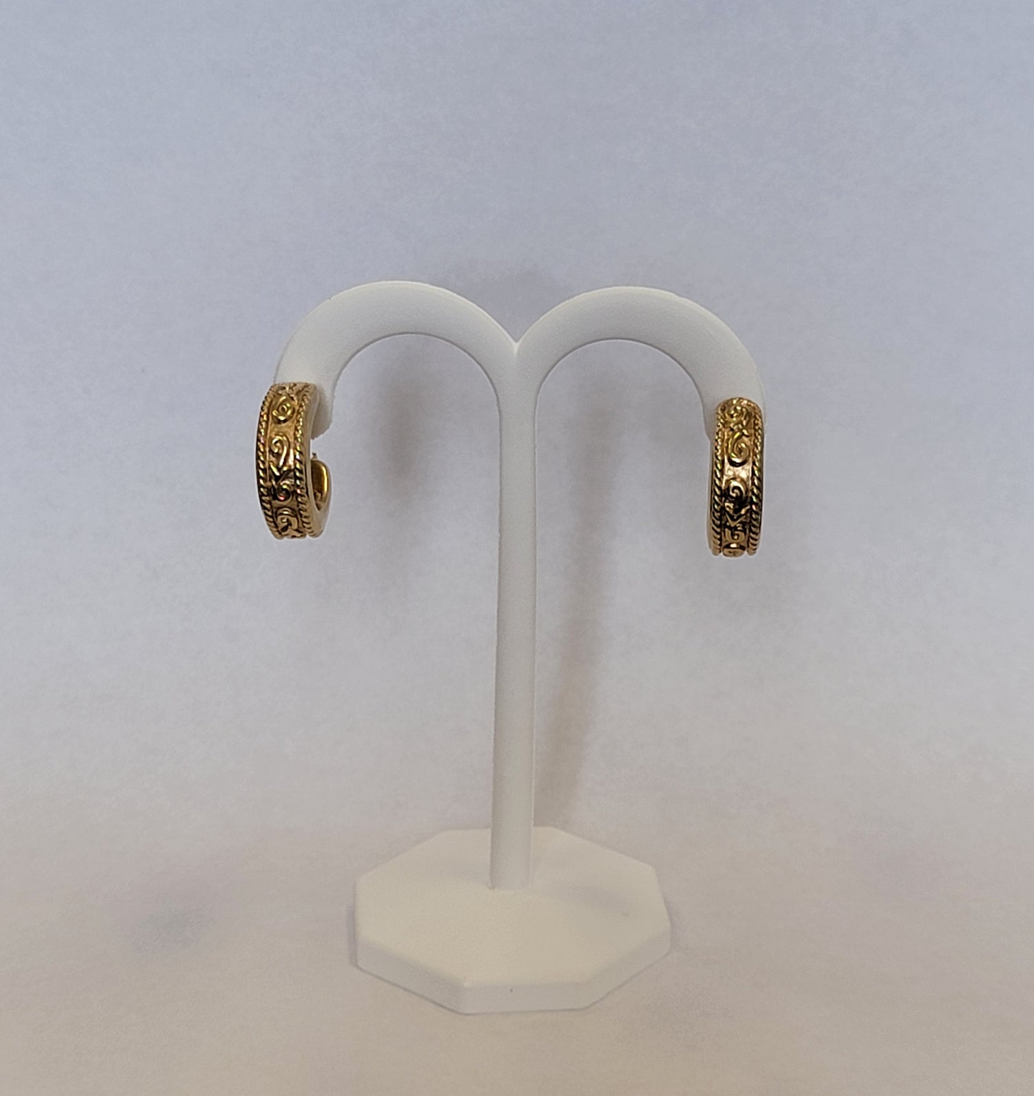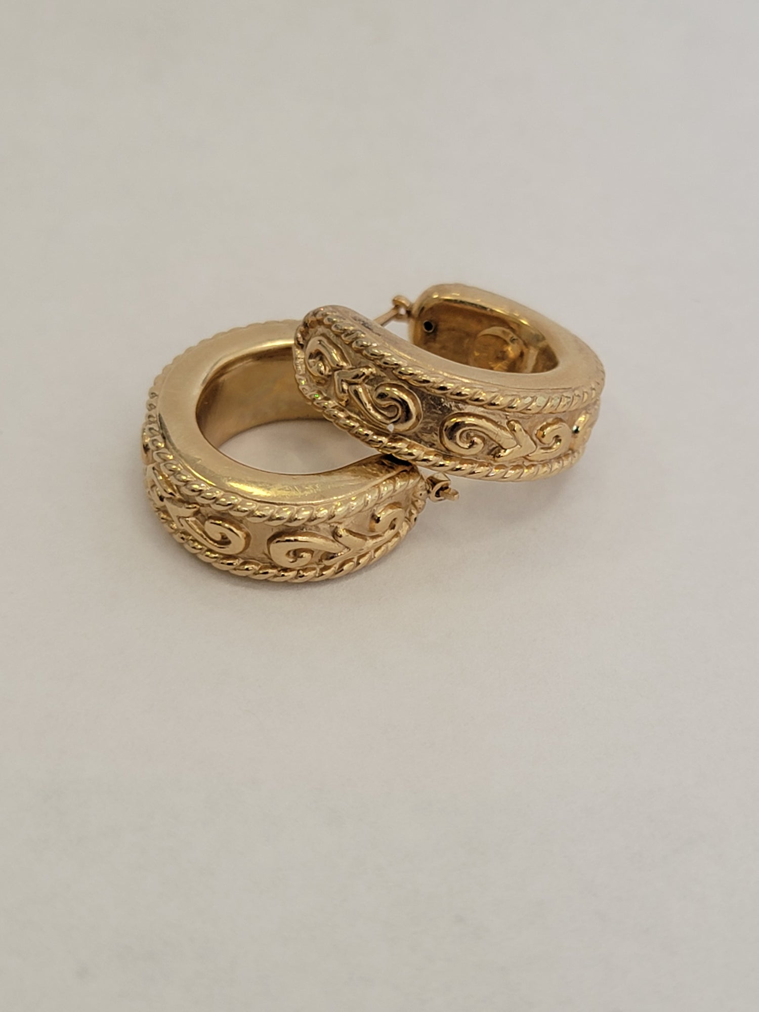 These 14kt gold hollow hoop earrings measure 21.5mm in diameter and 7.5mm wide, delivering bold style with lightweight comfort. Weighing 5.25 grams, their hollow design offers impressive presence without feeling heavy. A chic, statement-making staple perfect for elevating both everyday and evening looks.