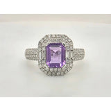 14kt white gold 1.5ct amethyst & 1/2ctw natural diamonds ring size 6.25