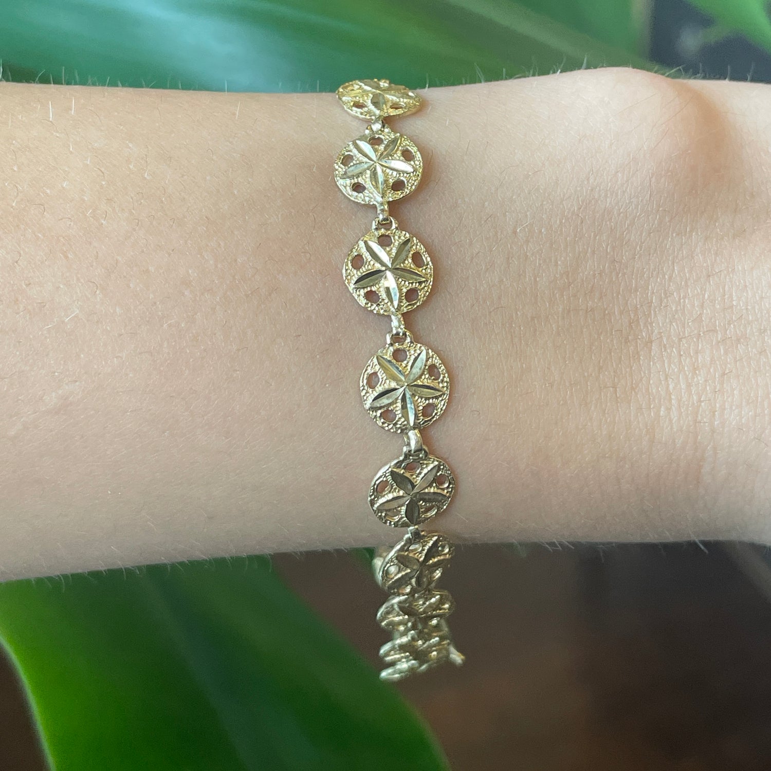 14kt yellow gold sand dollar bracelet. 7in long. 7.14g total weight.