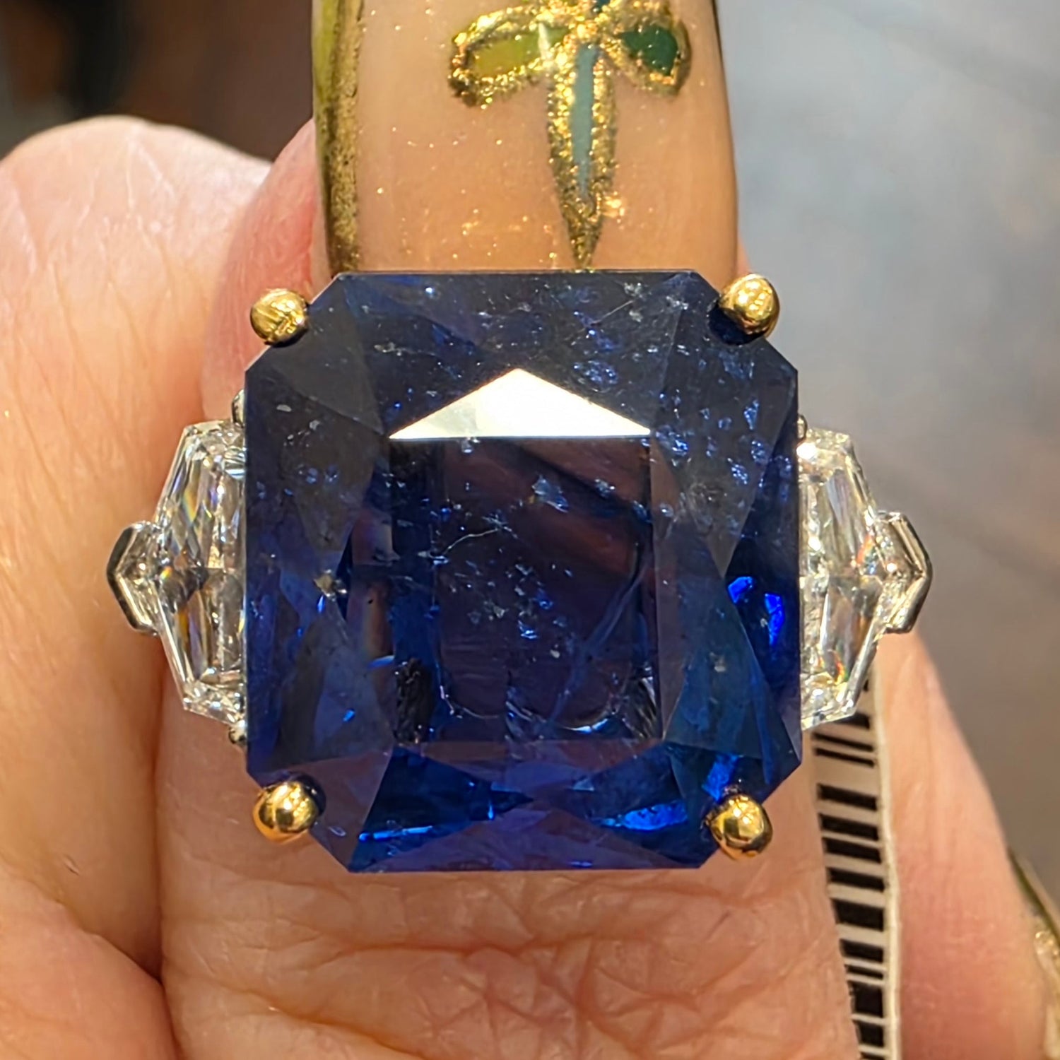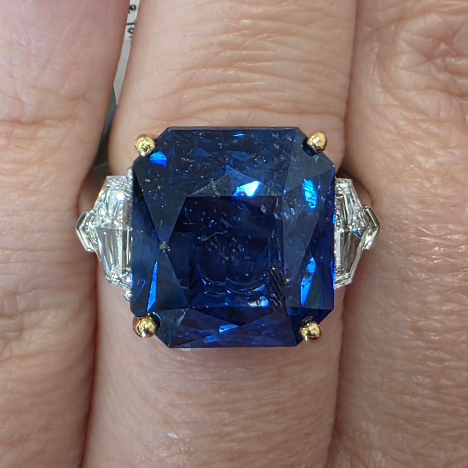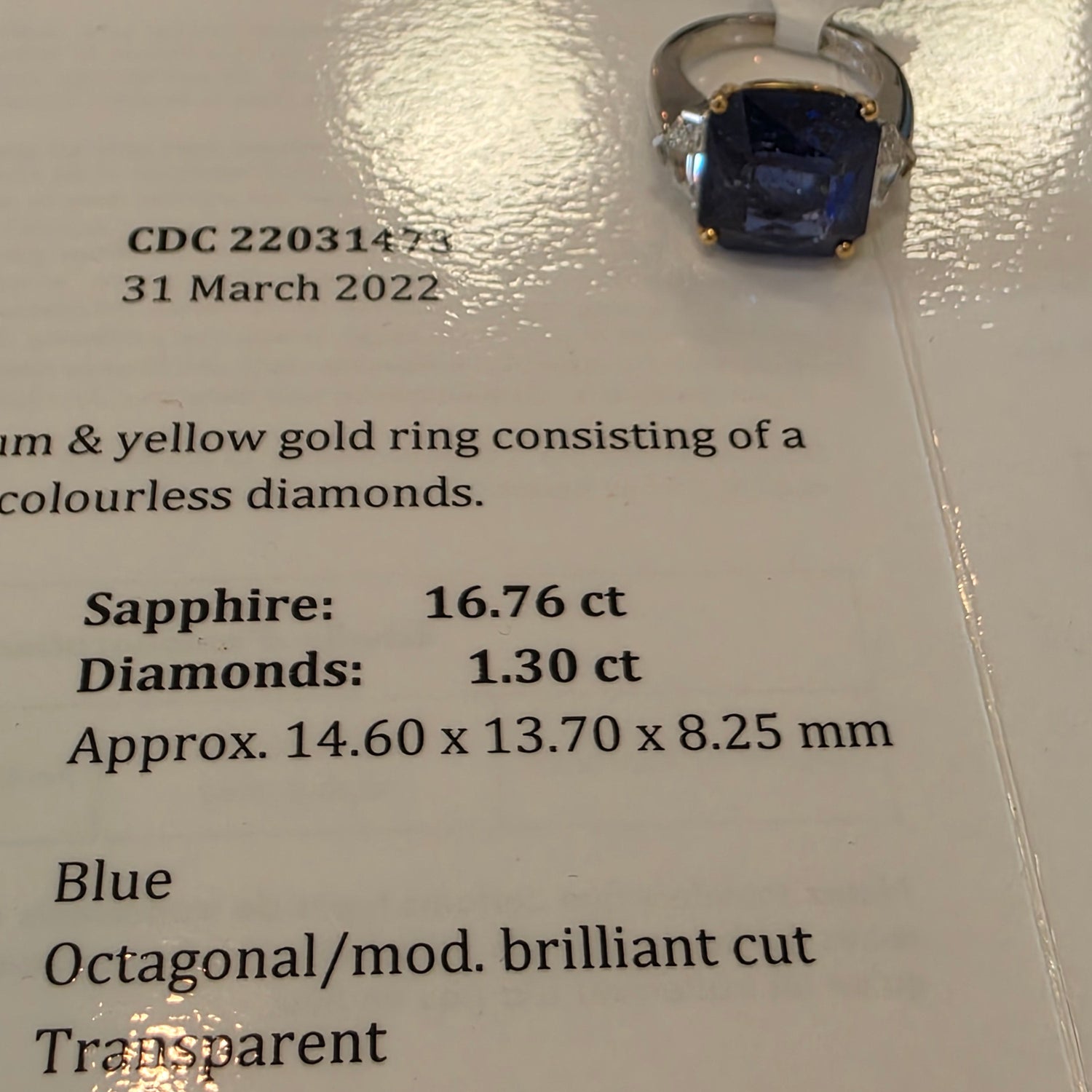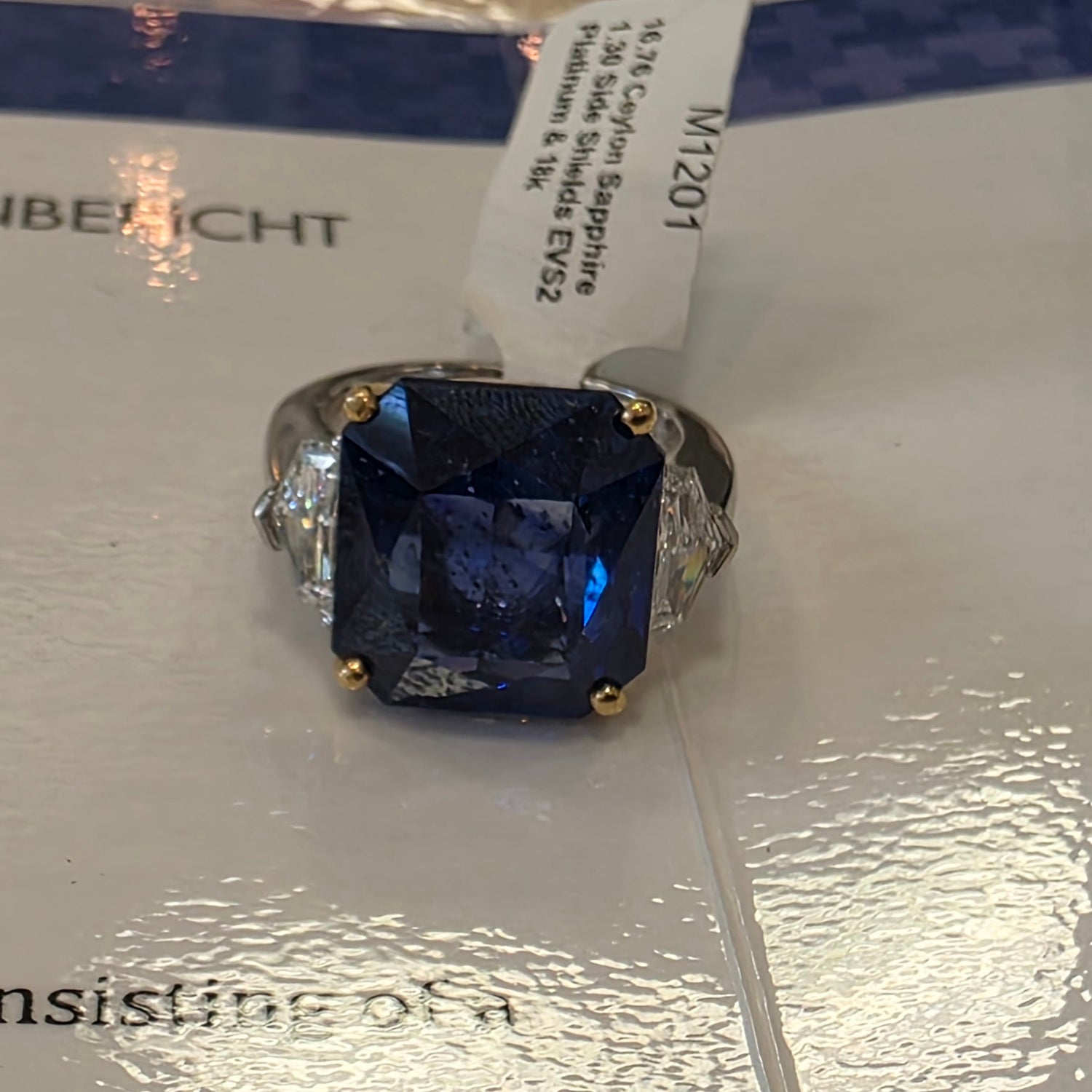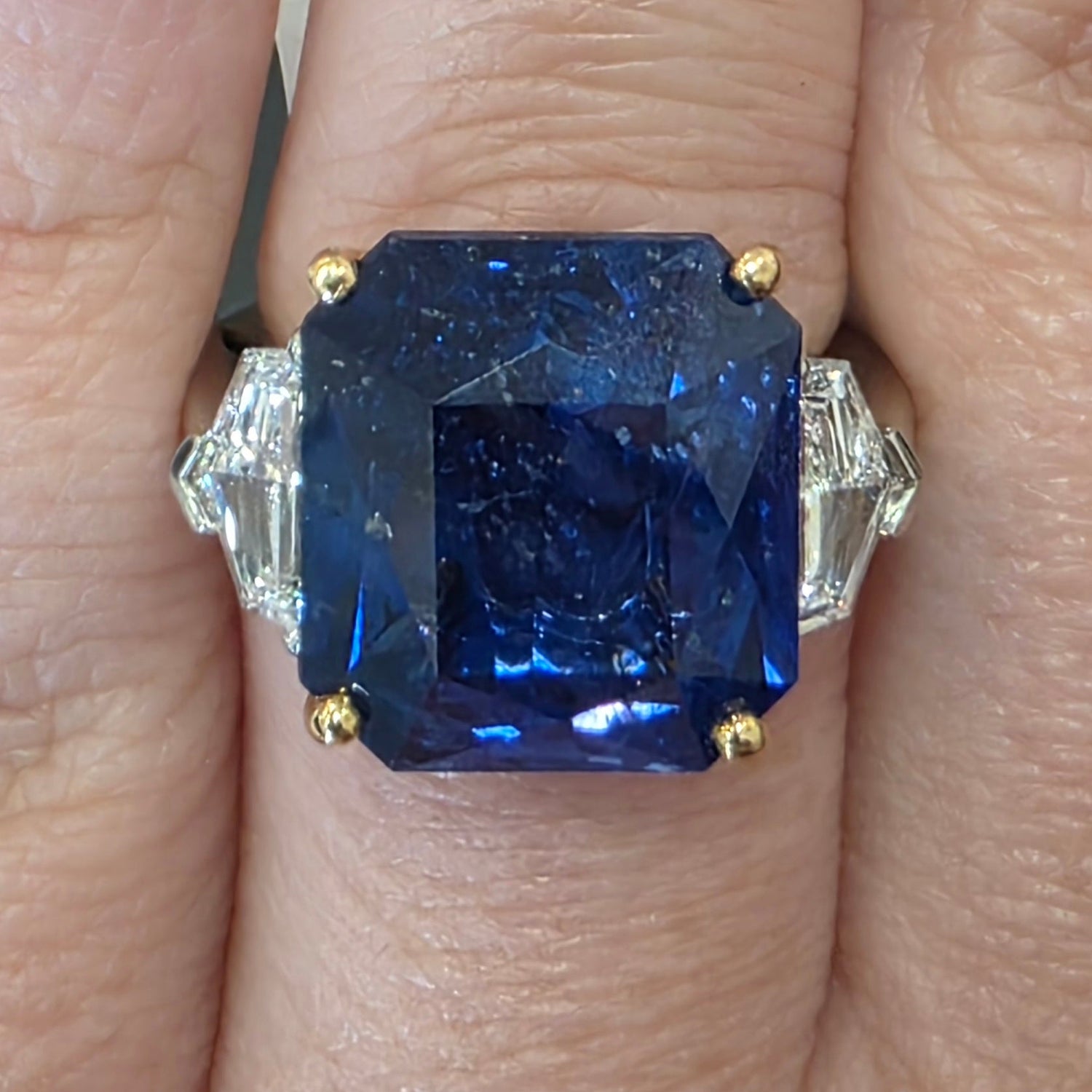 16.76ct ceylon sapphire & 1.30ctw cadillac cut natural diamond accents (E VS2) Plat & 18kt ring