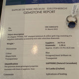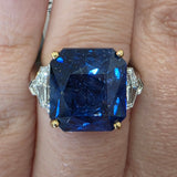 16.76ct ceylon sapphire & 1.30ctw cadillac cut natural diamond accents (E VS2) Plat & 18kt accents ring size 6.5 with cert