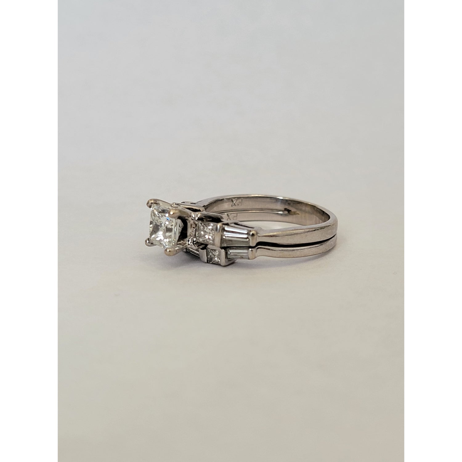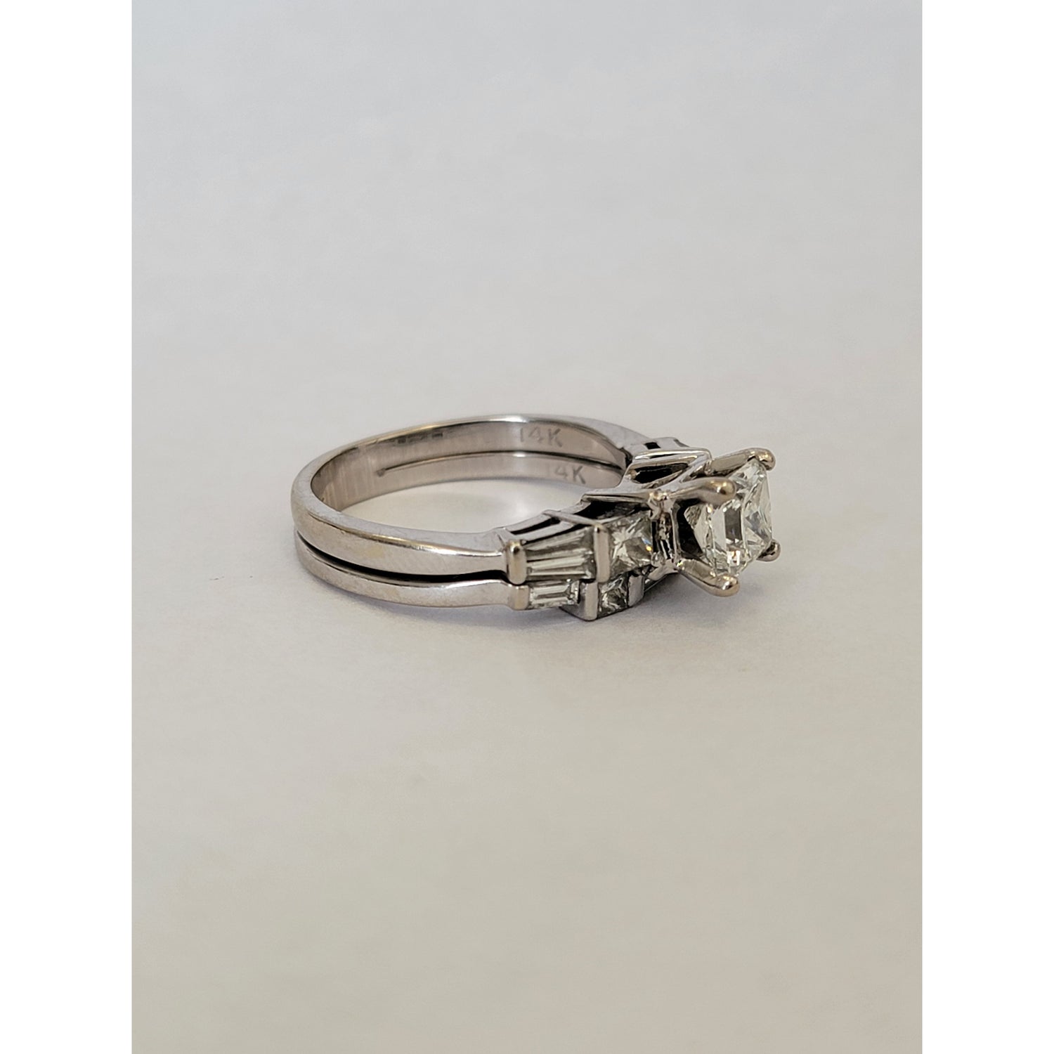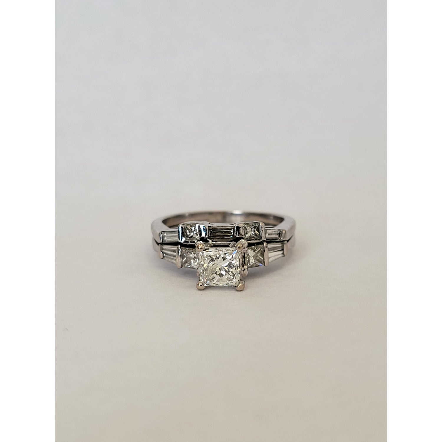 1ctw Center Princess Cut Diamond Ring With .75ctw Accent Diamonds In 14kt White Gold Weighing 5.9g Size 7.5 SI-2 & H