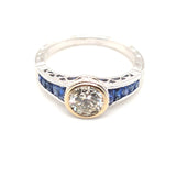 1ctw (G,VS1) Center Round Diamond Ring With .5ctw Sapphire accents In 18kt White Gold