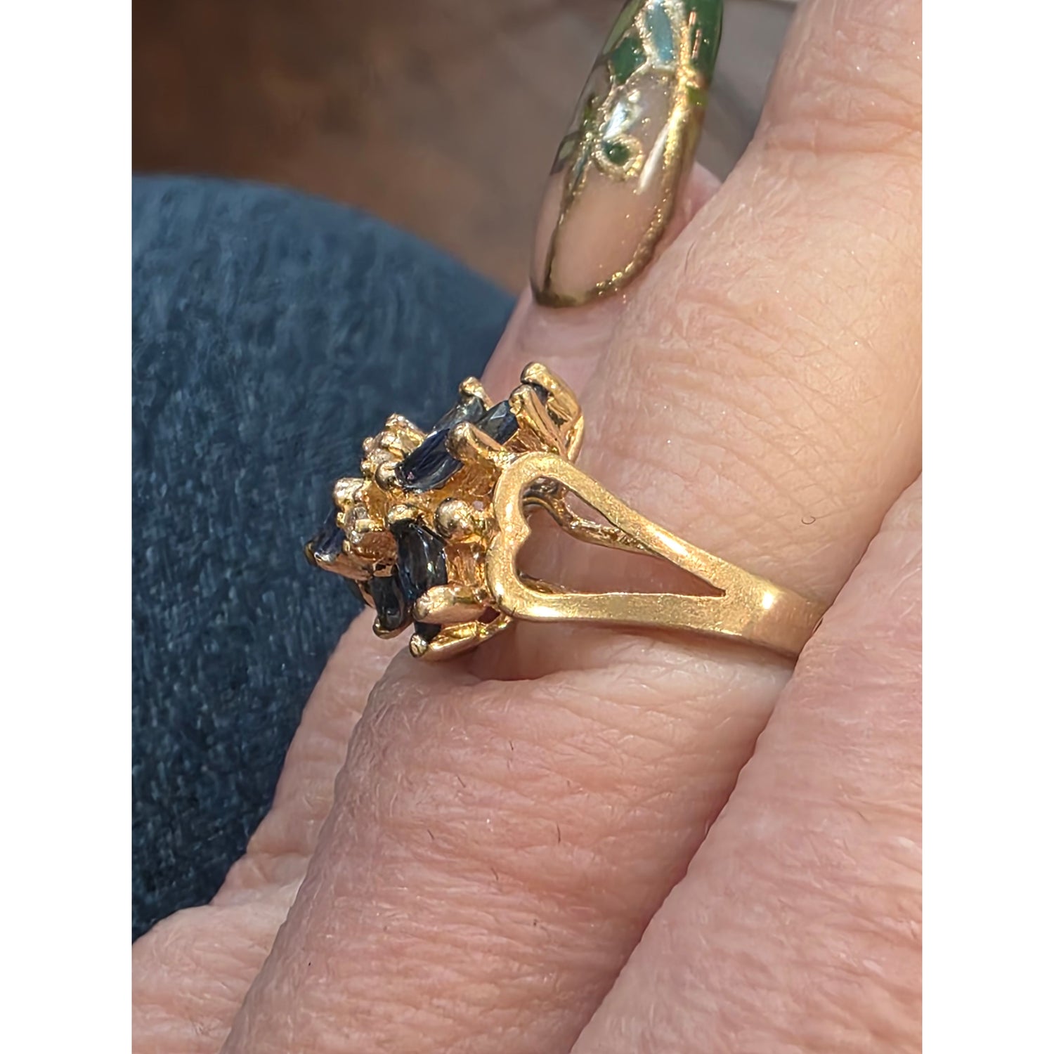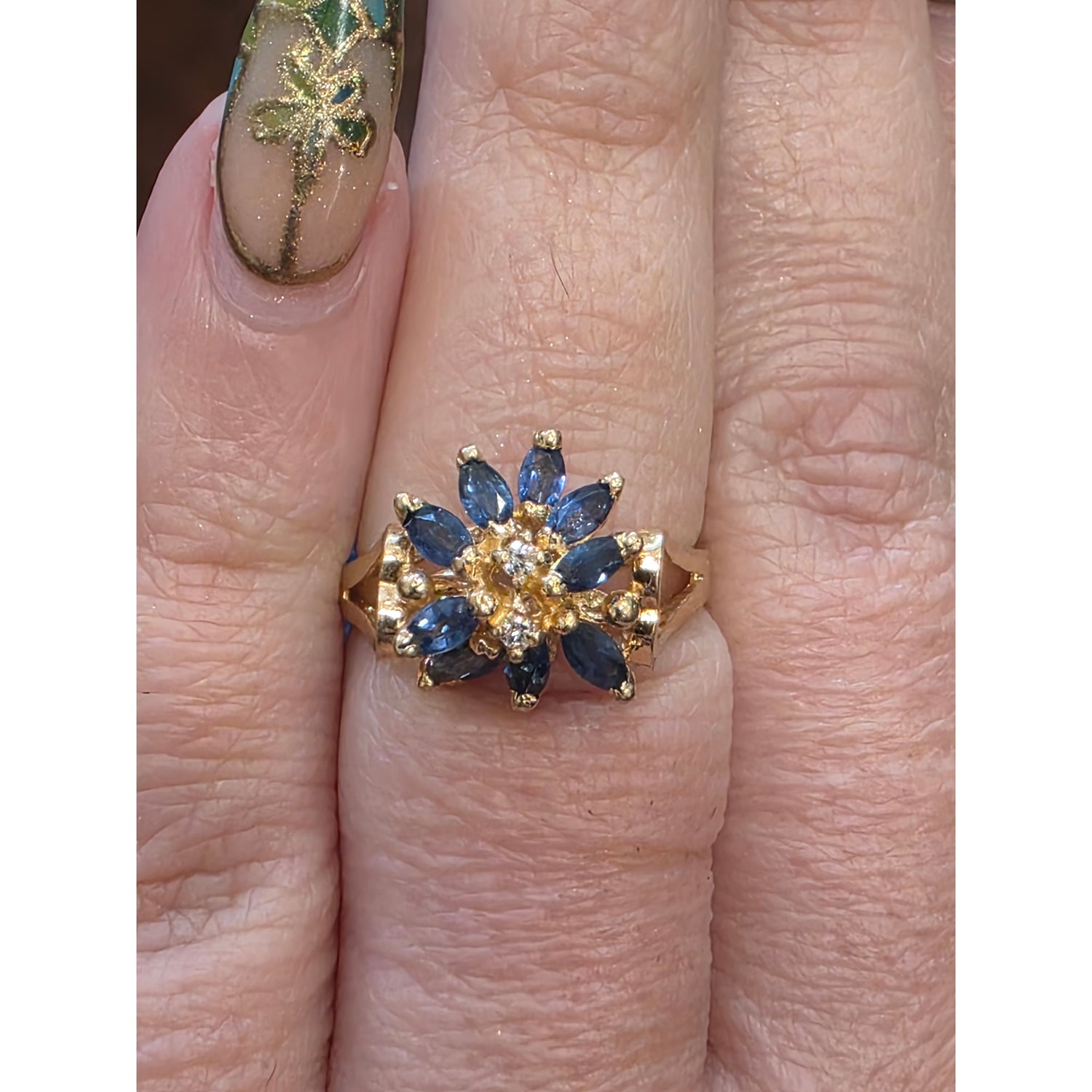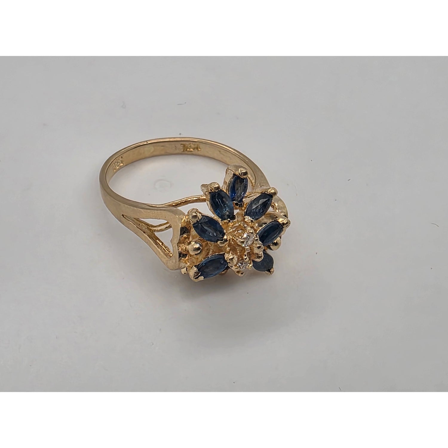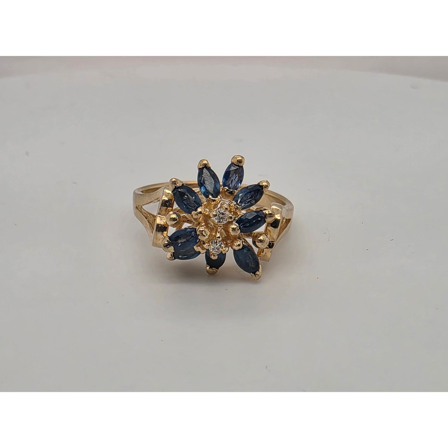 1ctw Marquis Cut Natural Sapphire Ring With .2 Diamond Accents In 14kt Gold Size 5.25