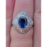 2.29 Ct Sapphire & 0.92 Ctw natural Diamond ring in Platinum ring setting. Diamonds are VS in clarity & colorless. This ring is a size 6 but can be resized if needed, just drop us a note at checkout for a quote!