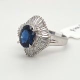 2.29 Ct Sapphire & Natural Diamond Platinum Ring