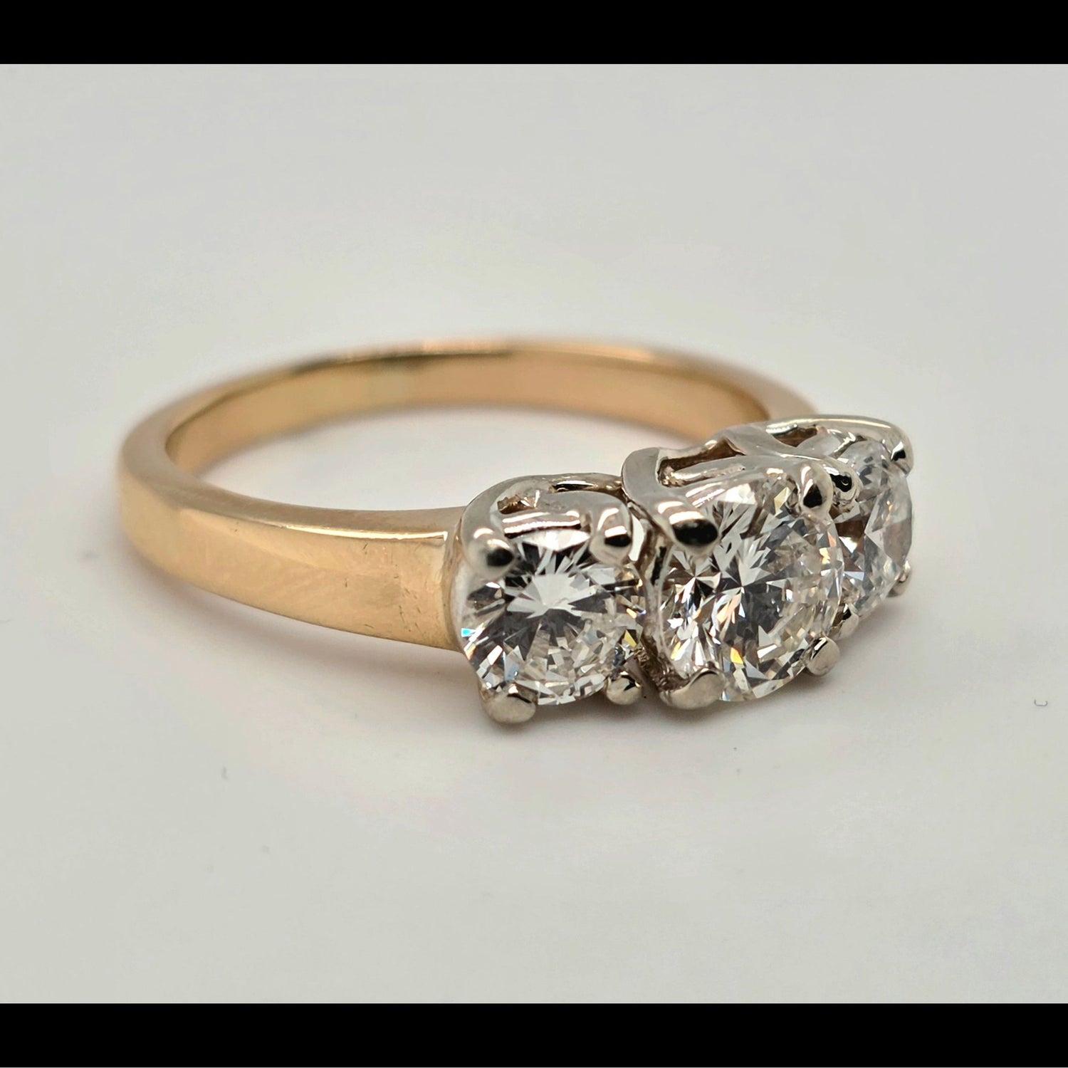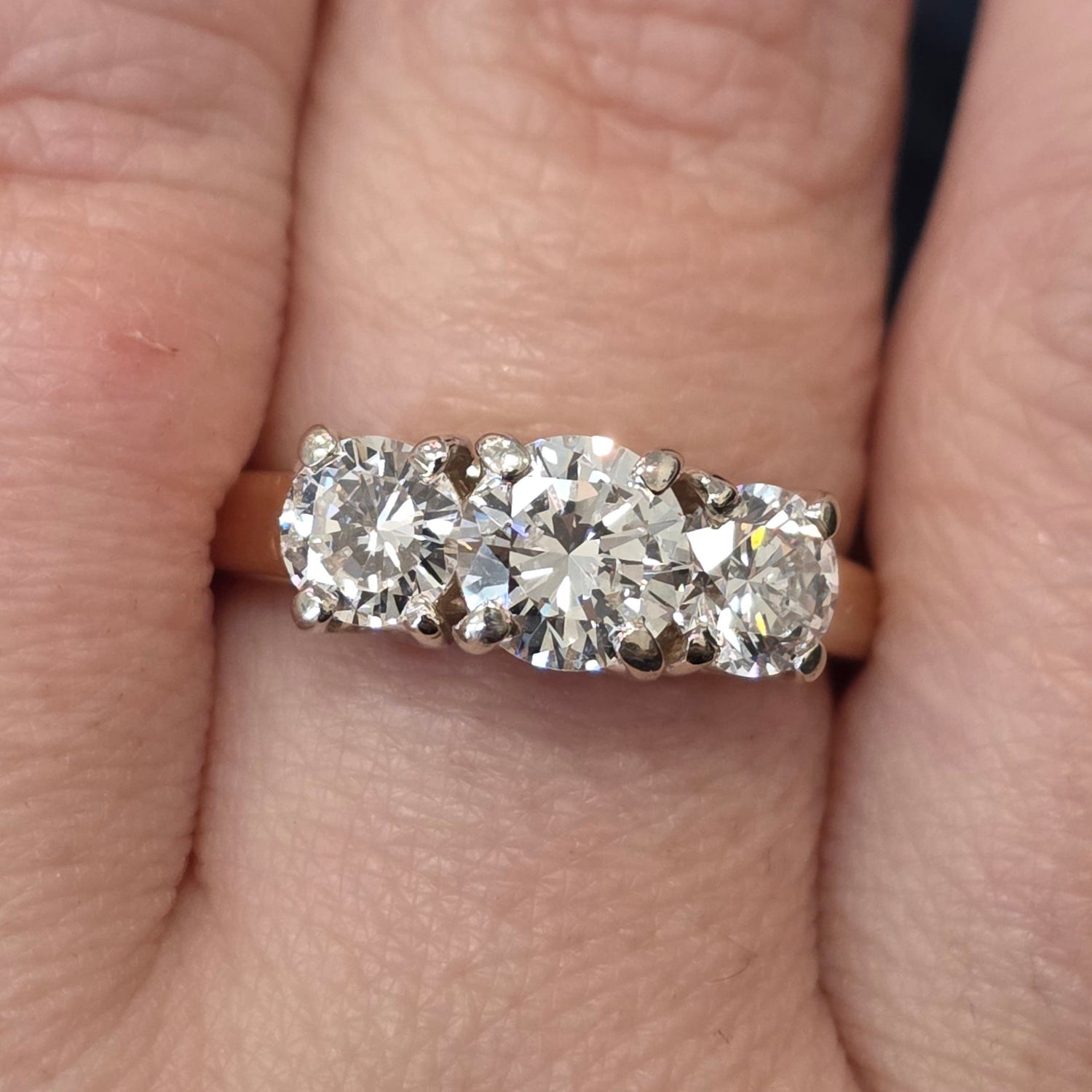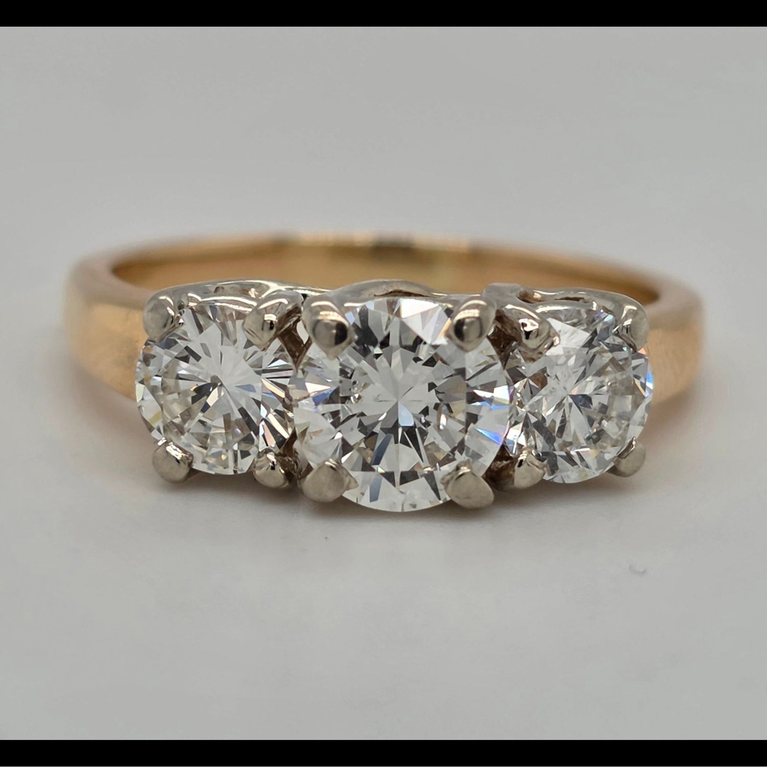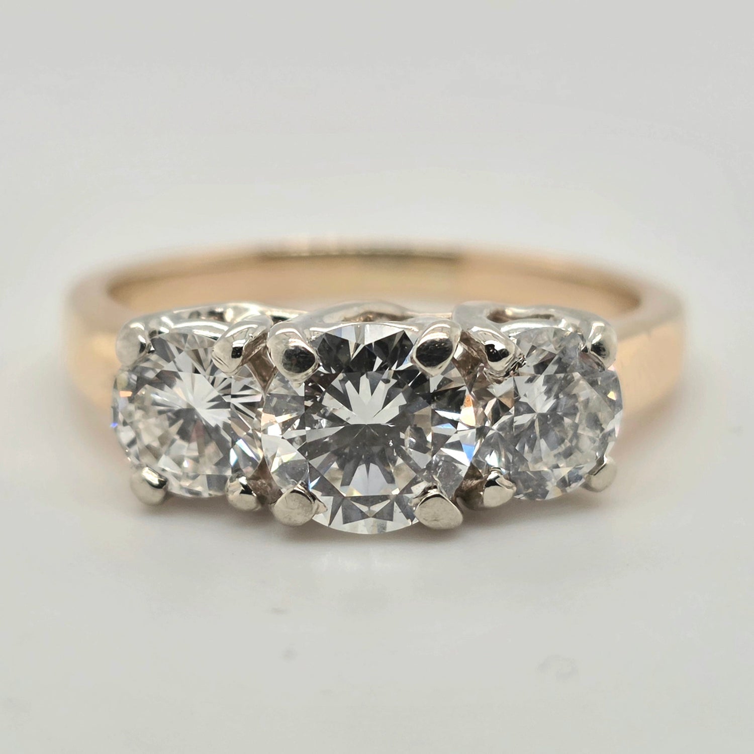 2.2ctw natural diamond 3 stone ring in 14kt gold