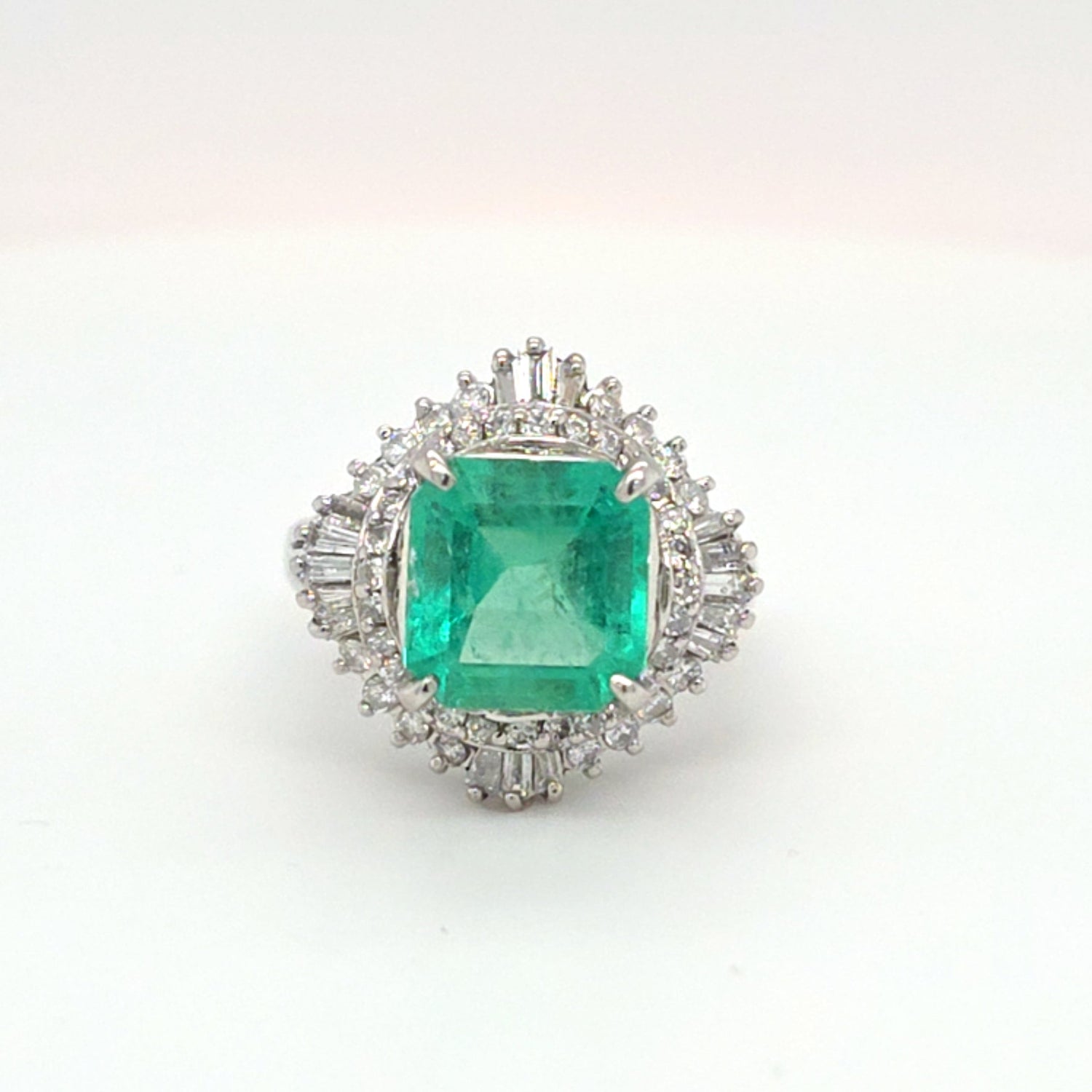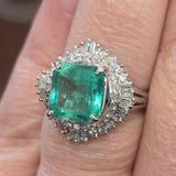 2.86ct Natural Columbian Emerald .61ctw Natural Diamond In Platinum