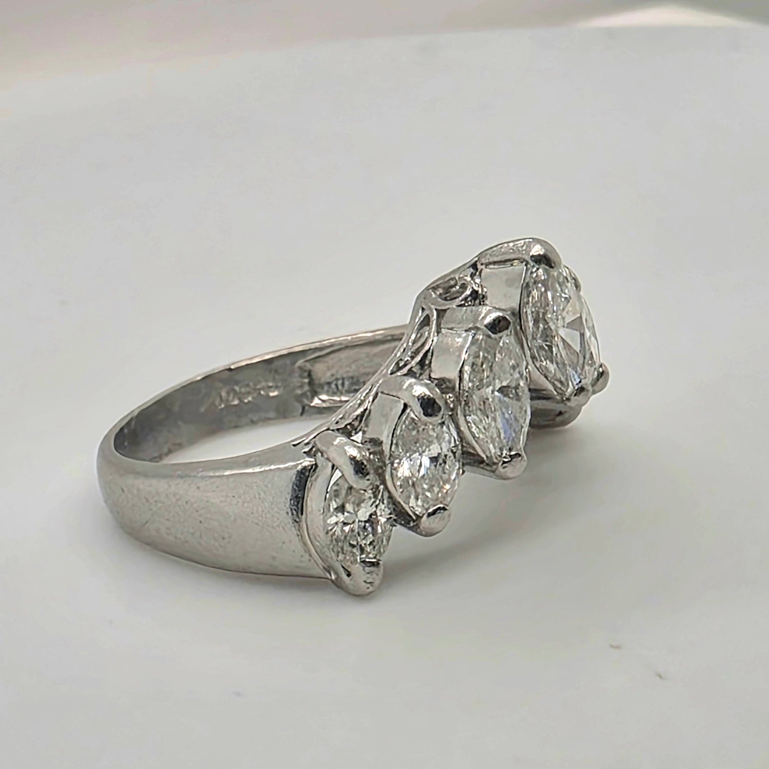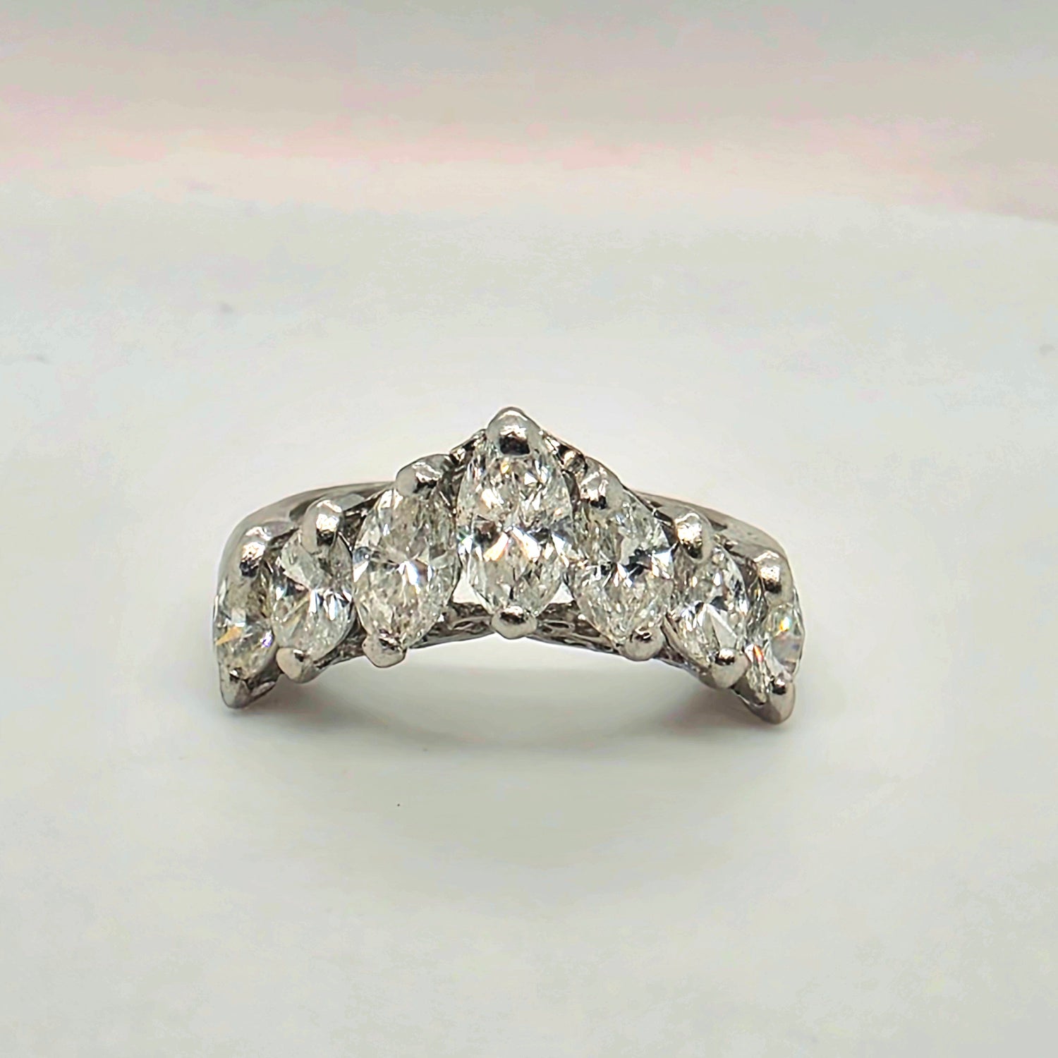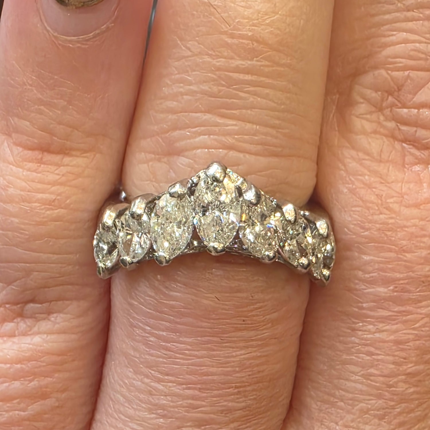Natural 2ctw Diamond V Shaped Cluster Ring In Platinum Size 6.5