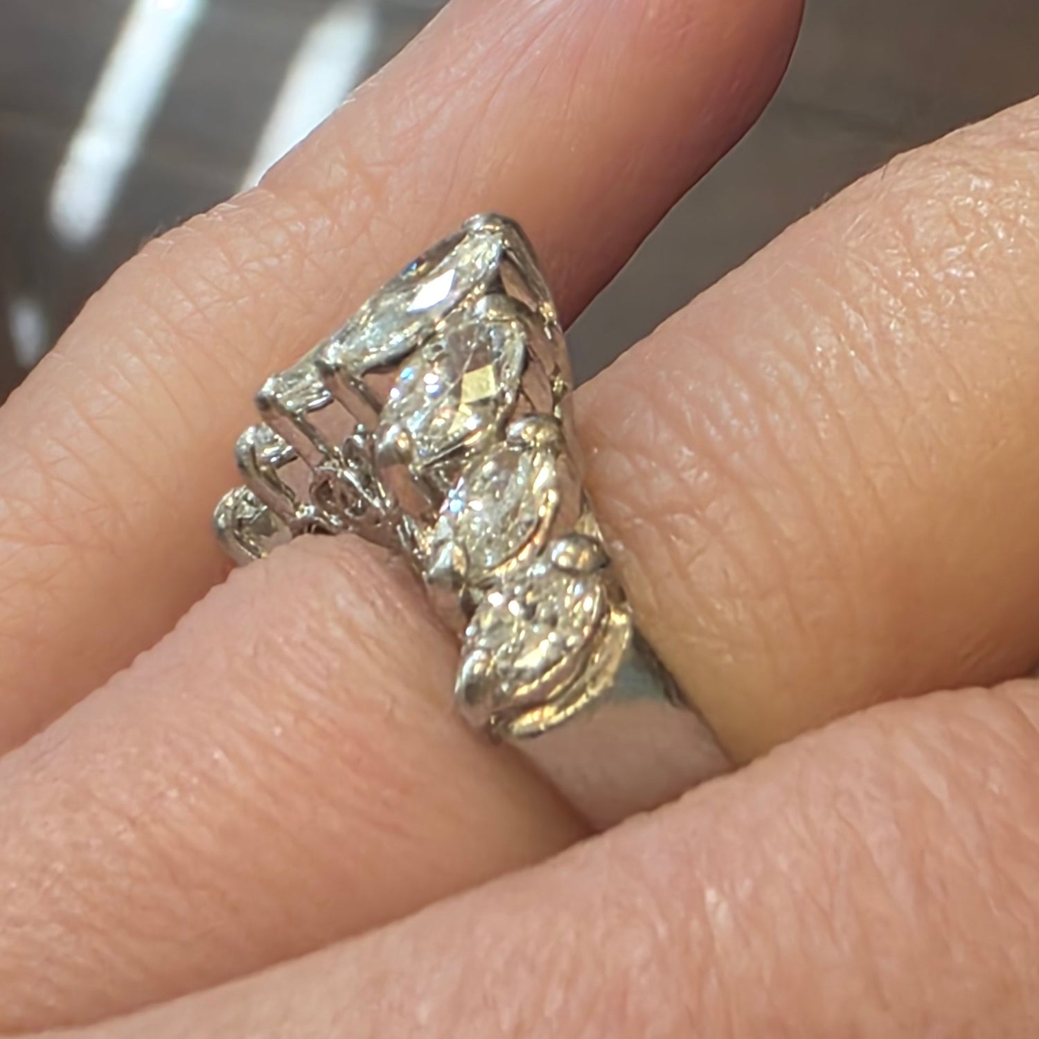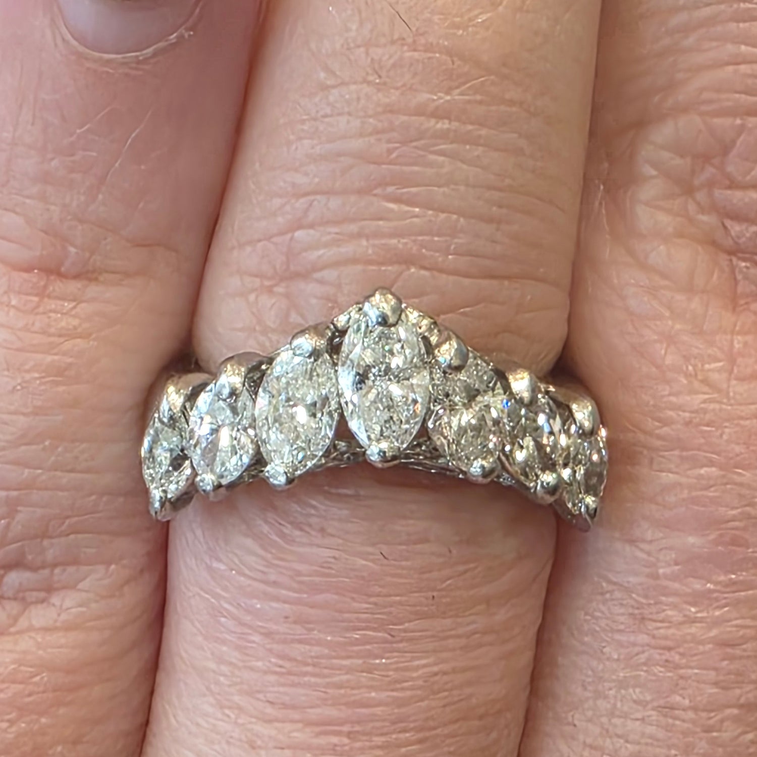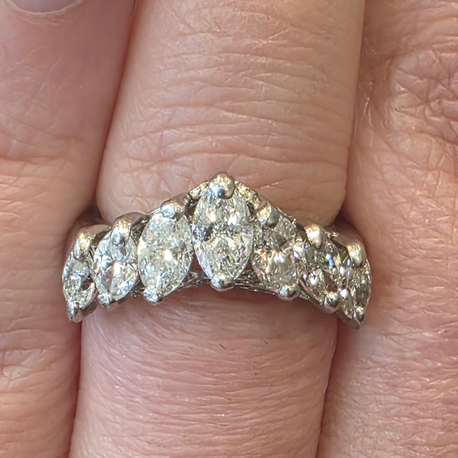 Natural 2ctw Diamond V Shaped Cluster Ring In Platinum Size 6.5