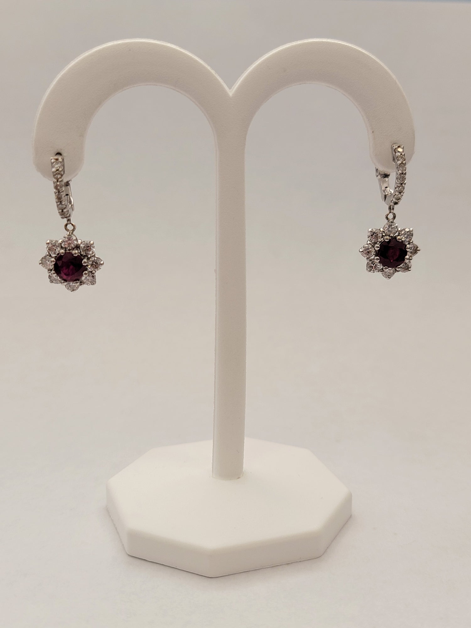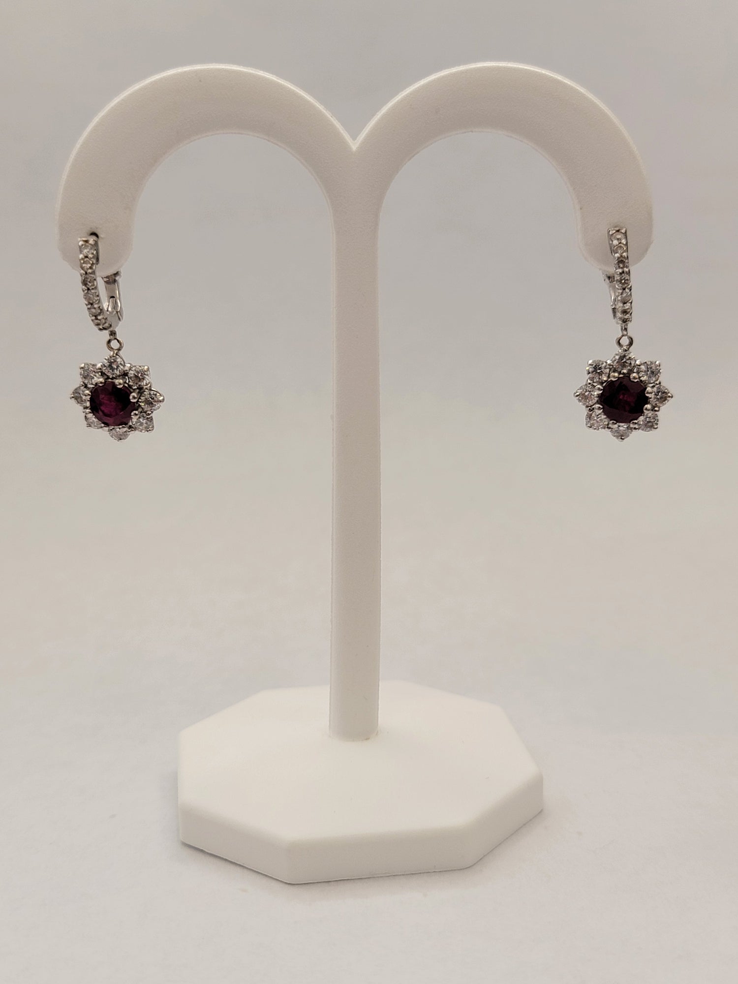 2ctw Natural Ruby & 1.5ctw Diamond Earrings In 14kt White Gold