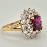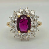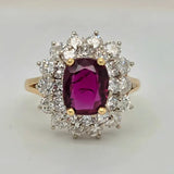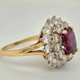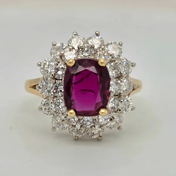 This exquisite ring features a clean, electric 3.1ct natural ruby complemented by 2ctw natural diamonds, all set in luxurious 18k gold.