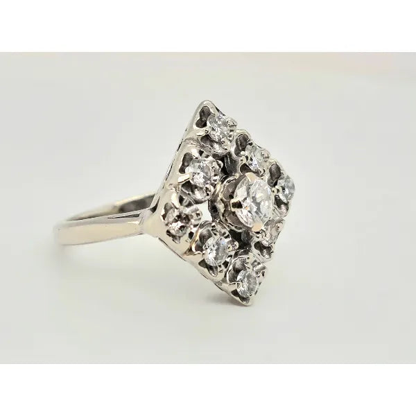 3/4ctw natural diamond diamond shaped cluster estate ring in 14kt white gold