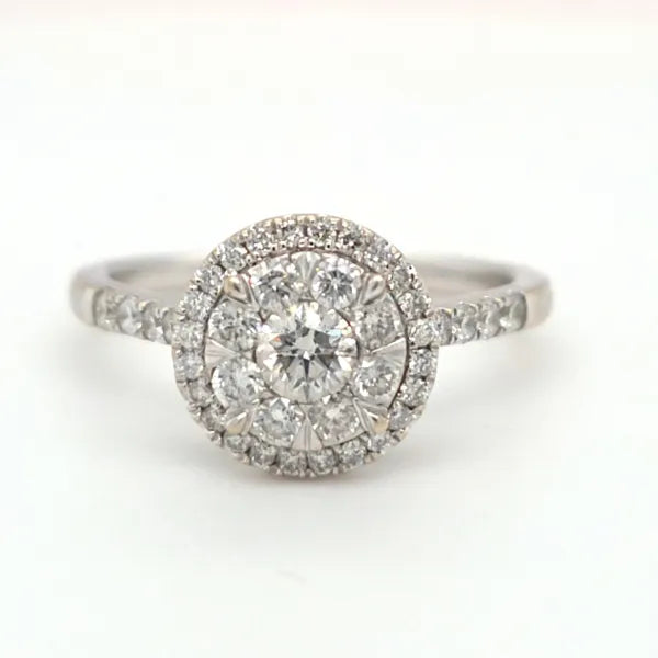 3/4ctw natural diamond round cluster ring in 14kt white gold size 9.5