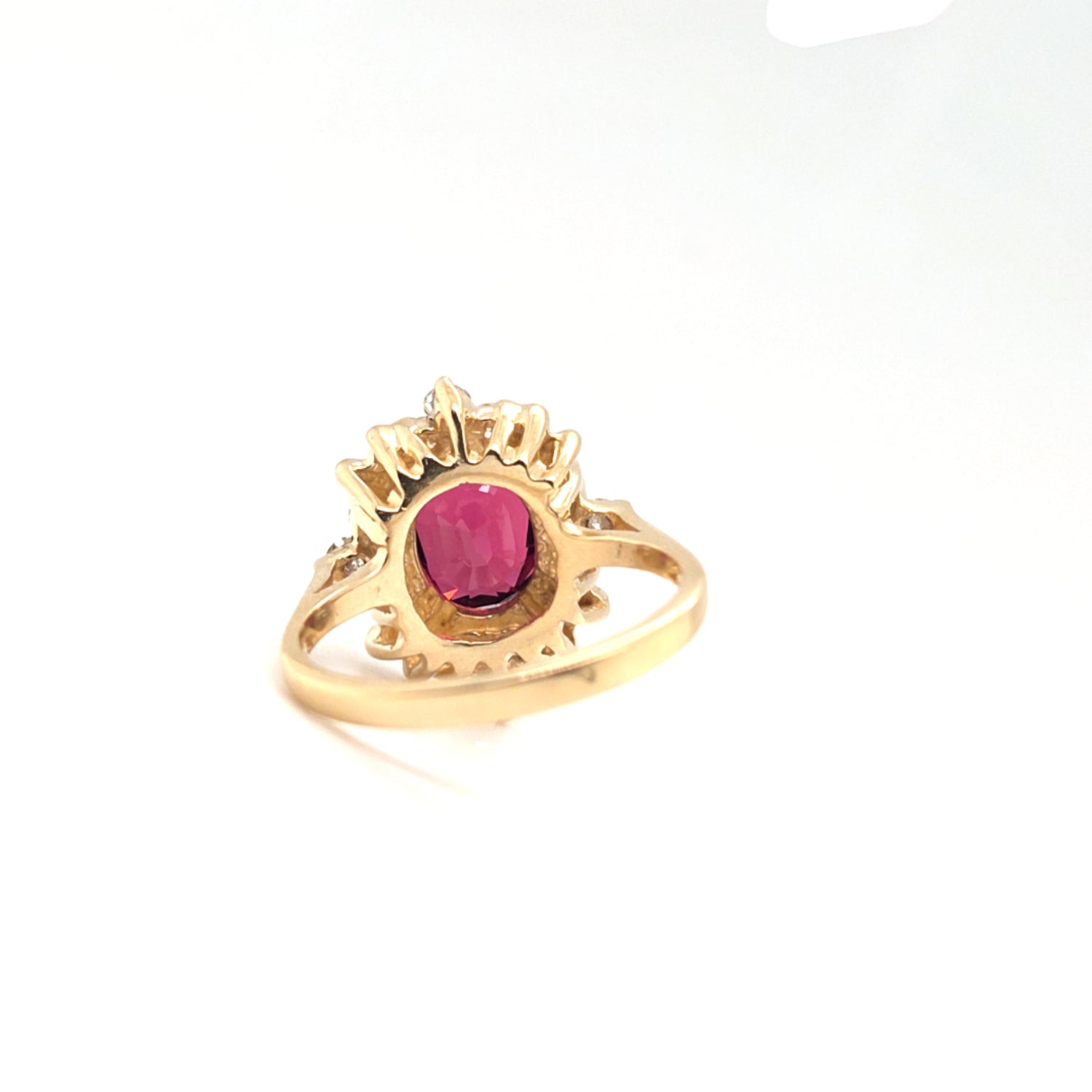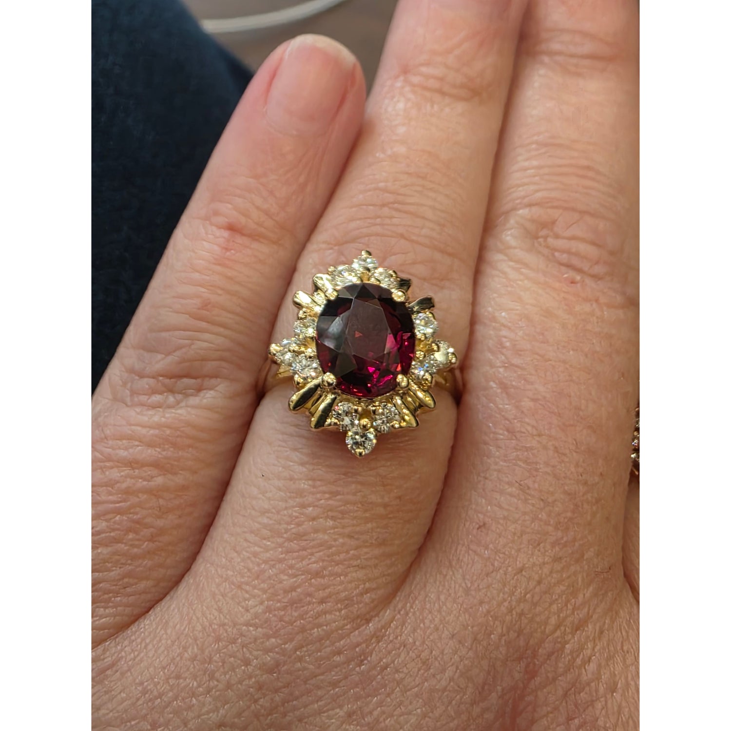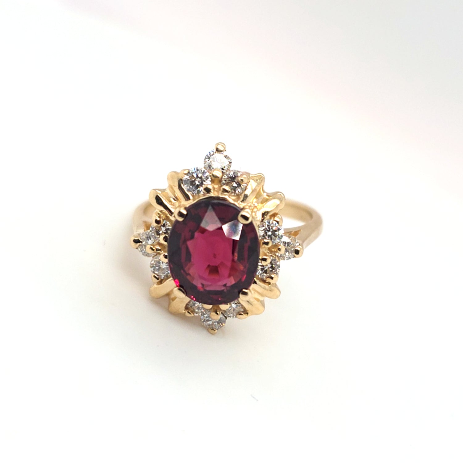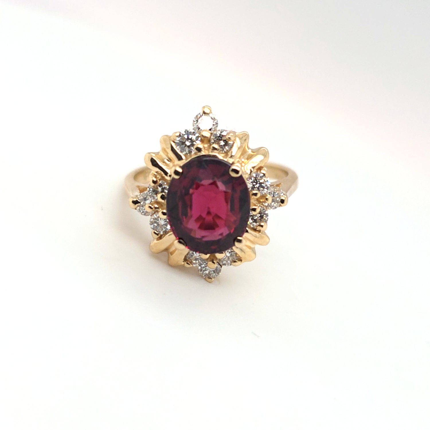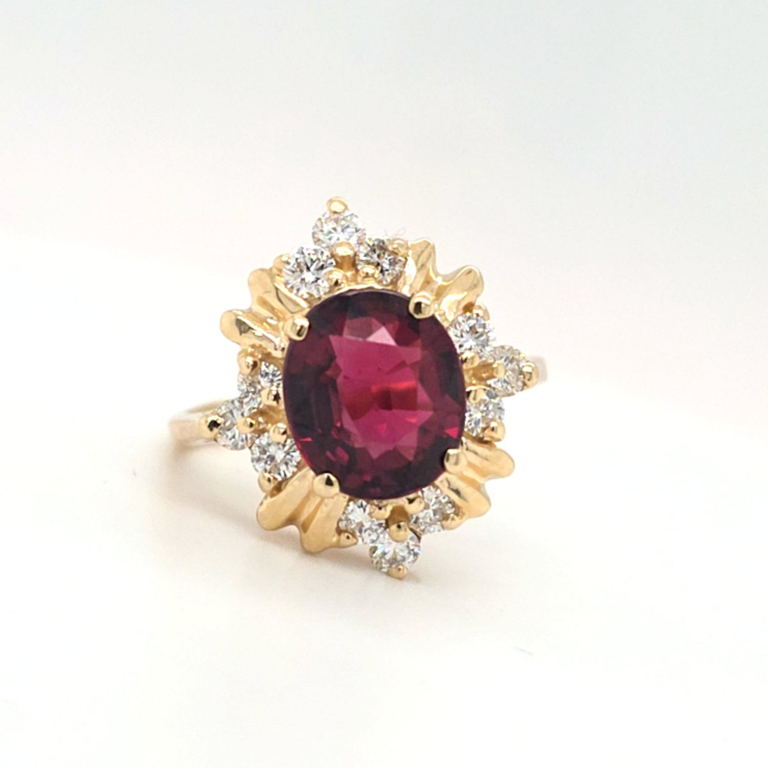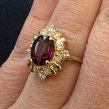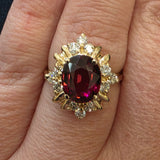 3.5ct Natural Cherry Garnet & 1/3ctw Natural Diamond Ring In 14kt Yellow Gold Vintage Mount
