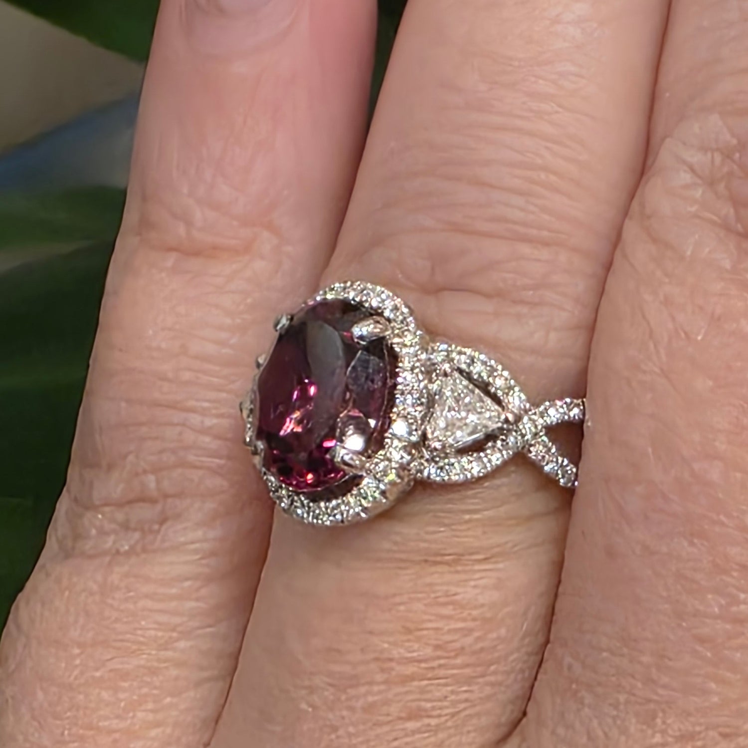 3ctw Rubellite Tourmaline With .83ctw Diamonds & 18kt White Gold Ring