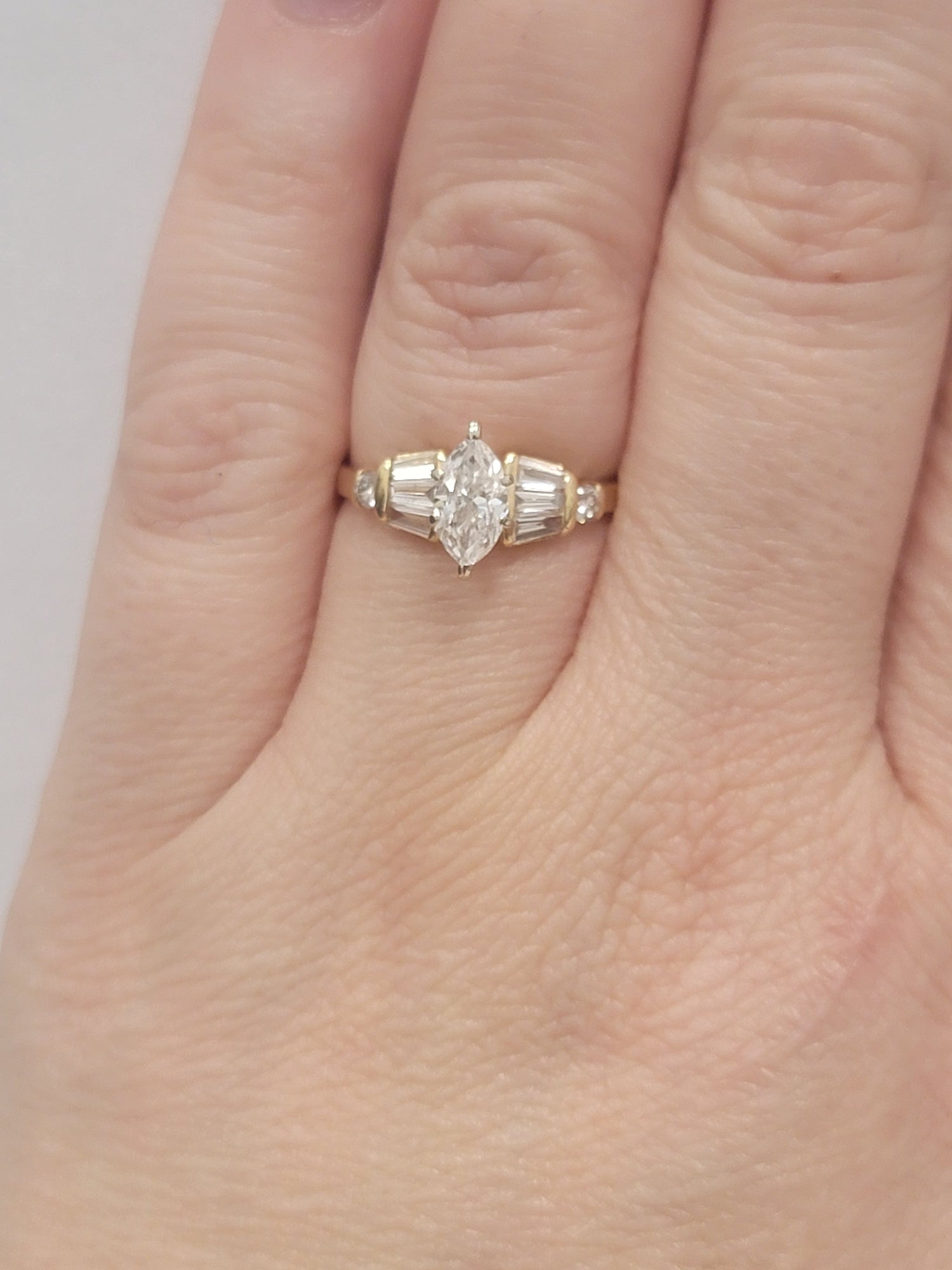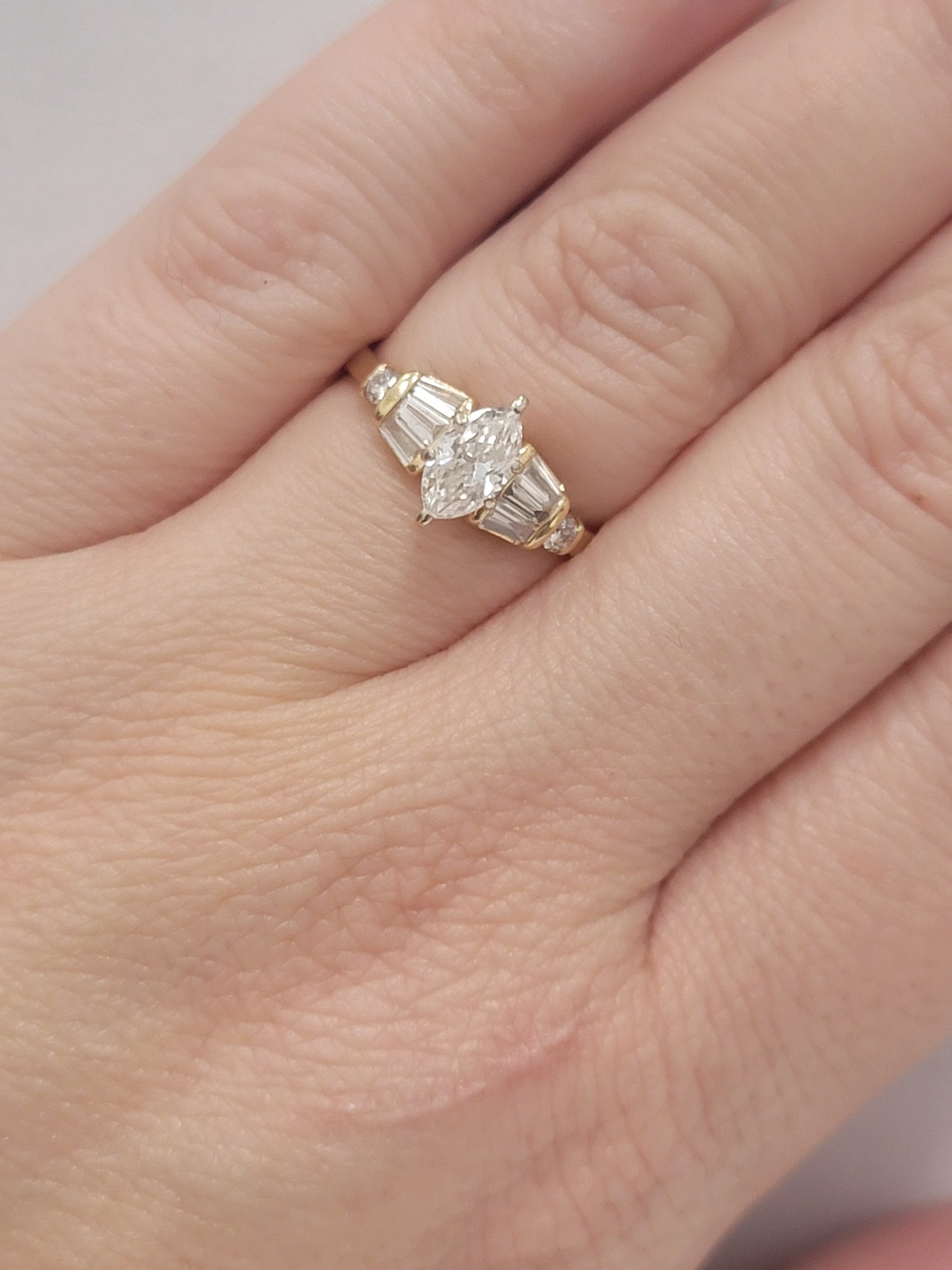 .5ctw Marquis cut Diamond Ring With .25ctw Accents In 14kt Gold VS1/F-G Size 6.75