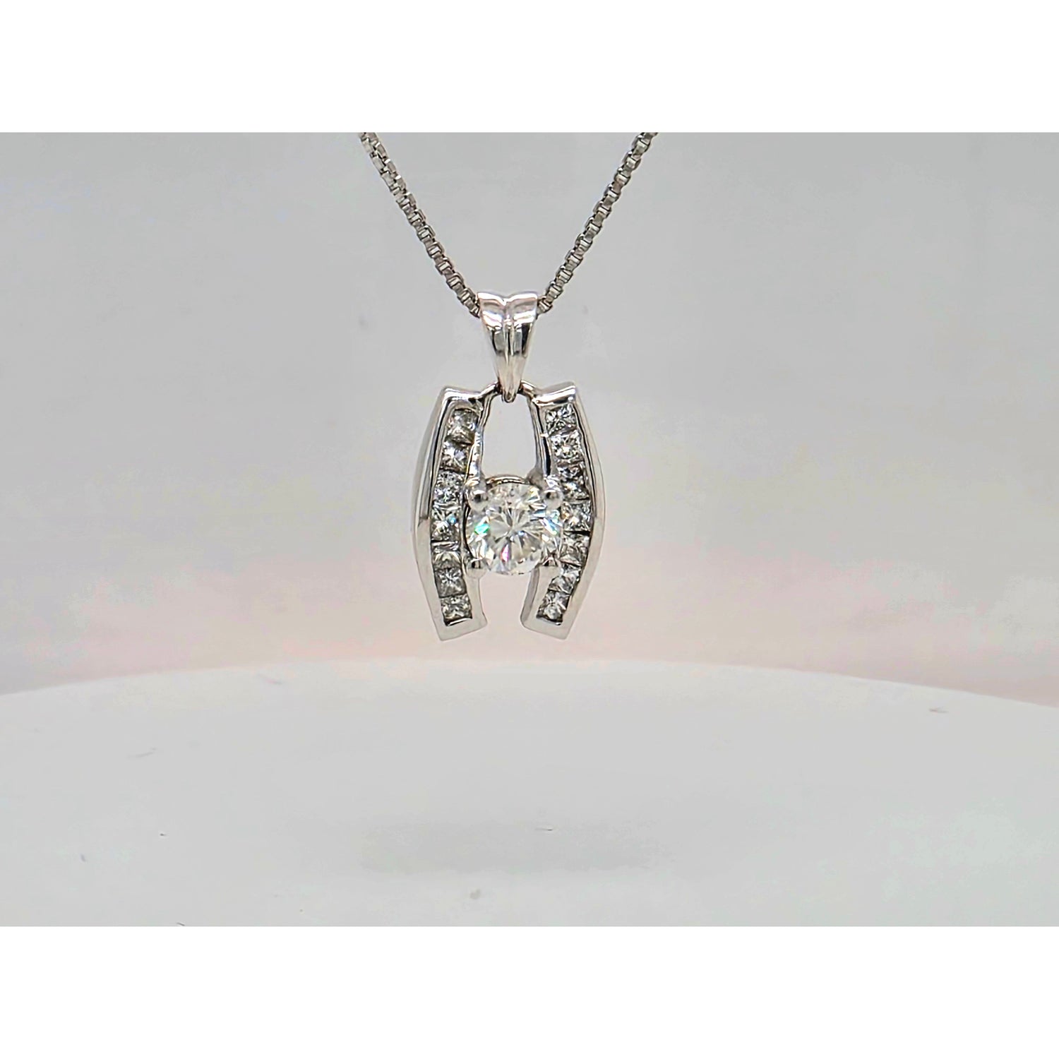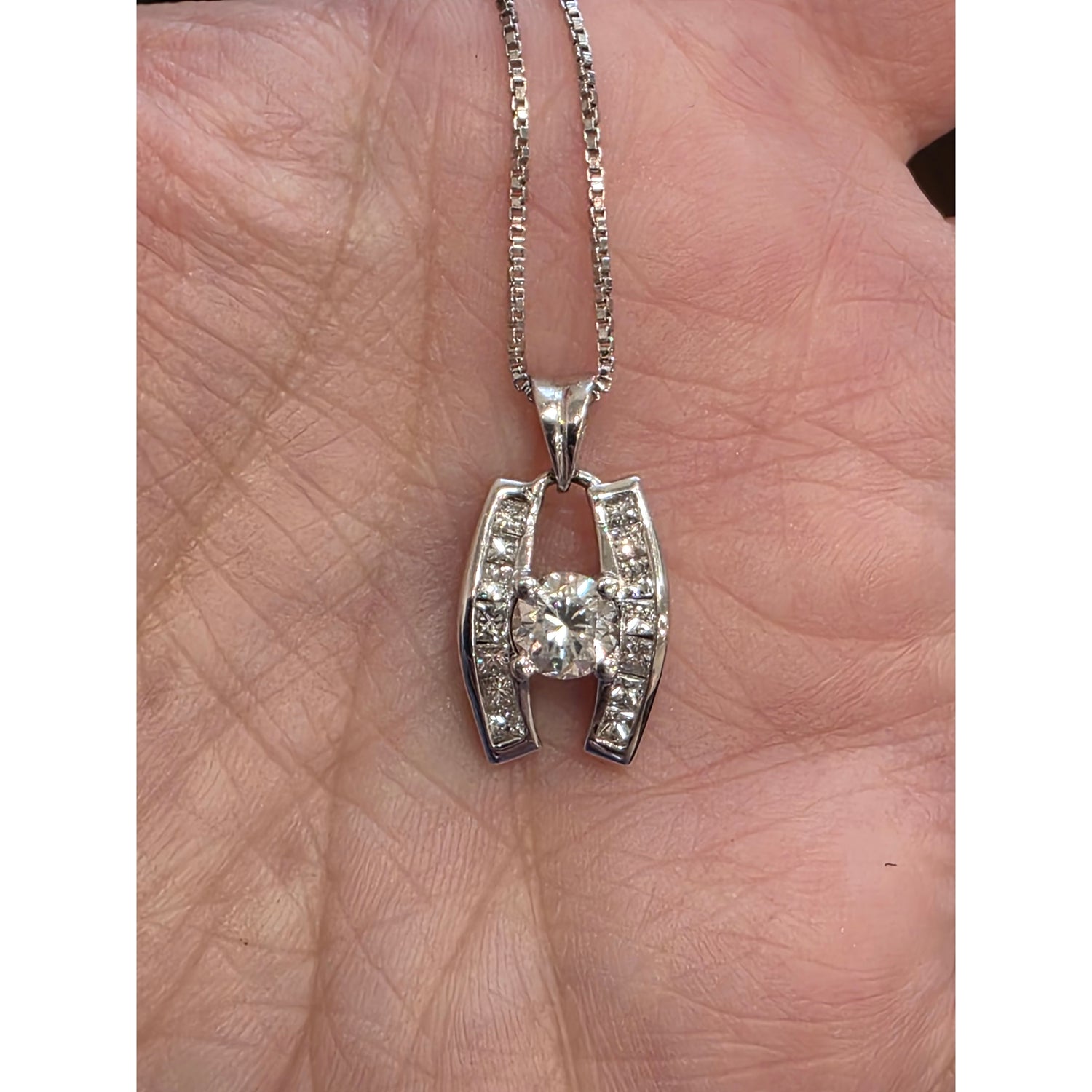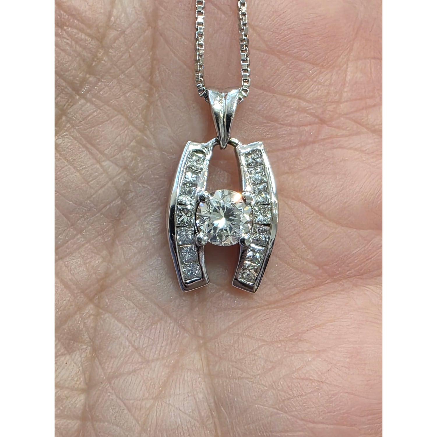 .75ctw Natural Diamond Pendant (.5ctw Center Diamond) In 14kt White Gold With 18in White Gold Chain Weighing 5.95g