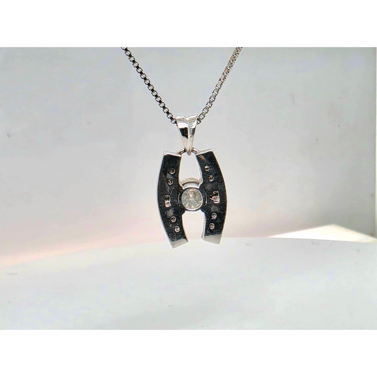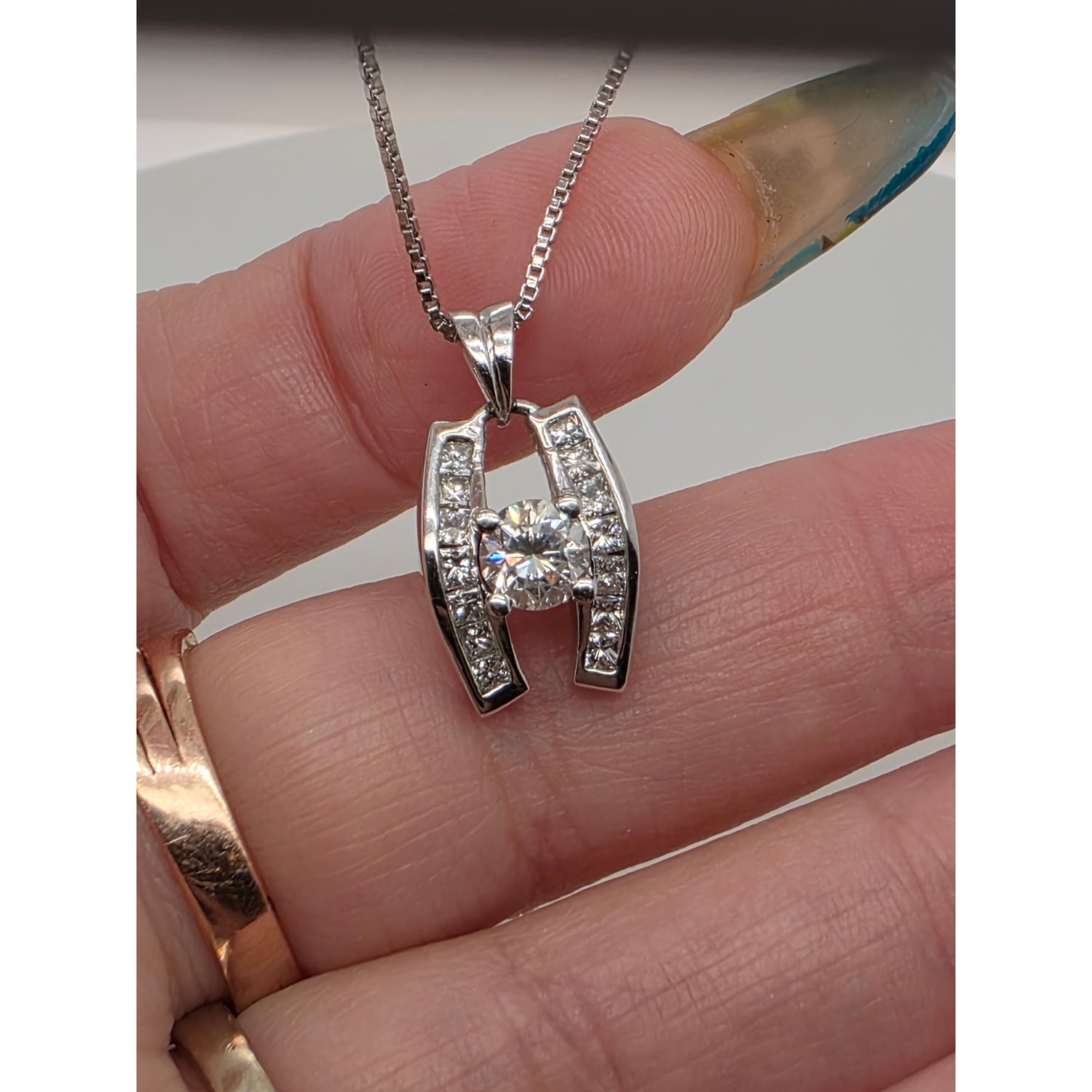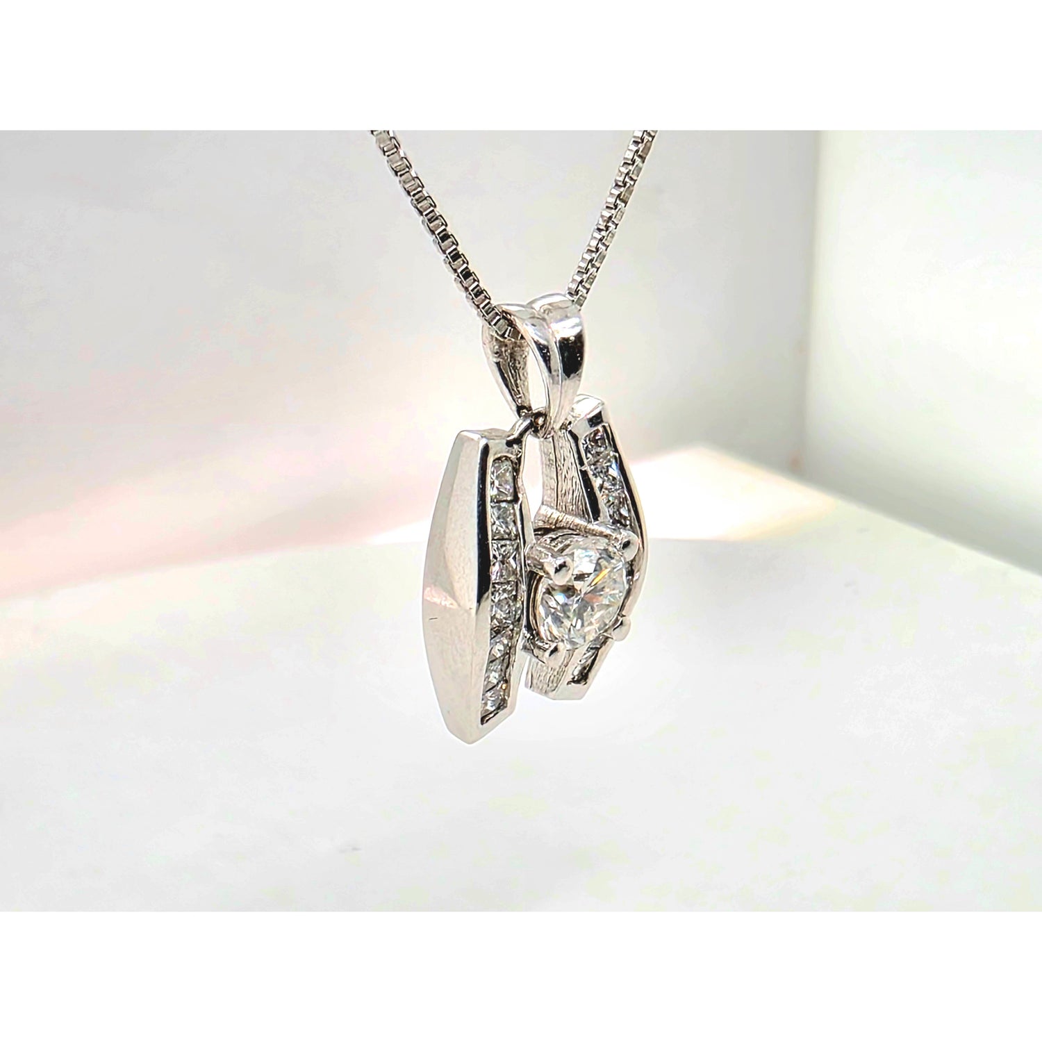 .75ctw Natural Diamond Pendant (.5ctw Center Diamond) In 14kt White Gold With 18in White Gold Chain Weighing 5.95g