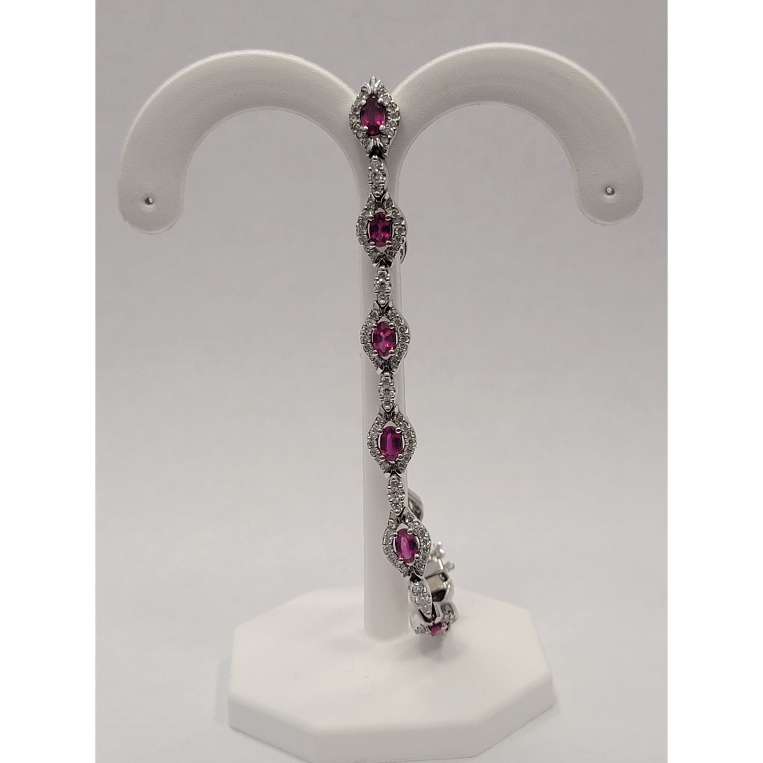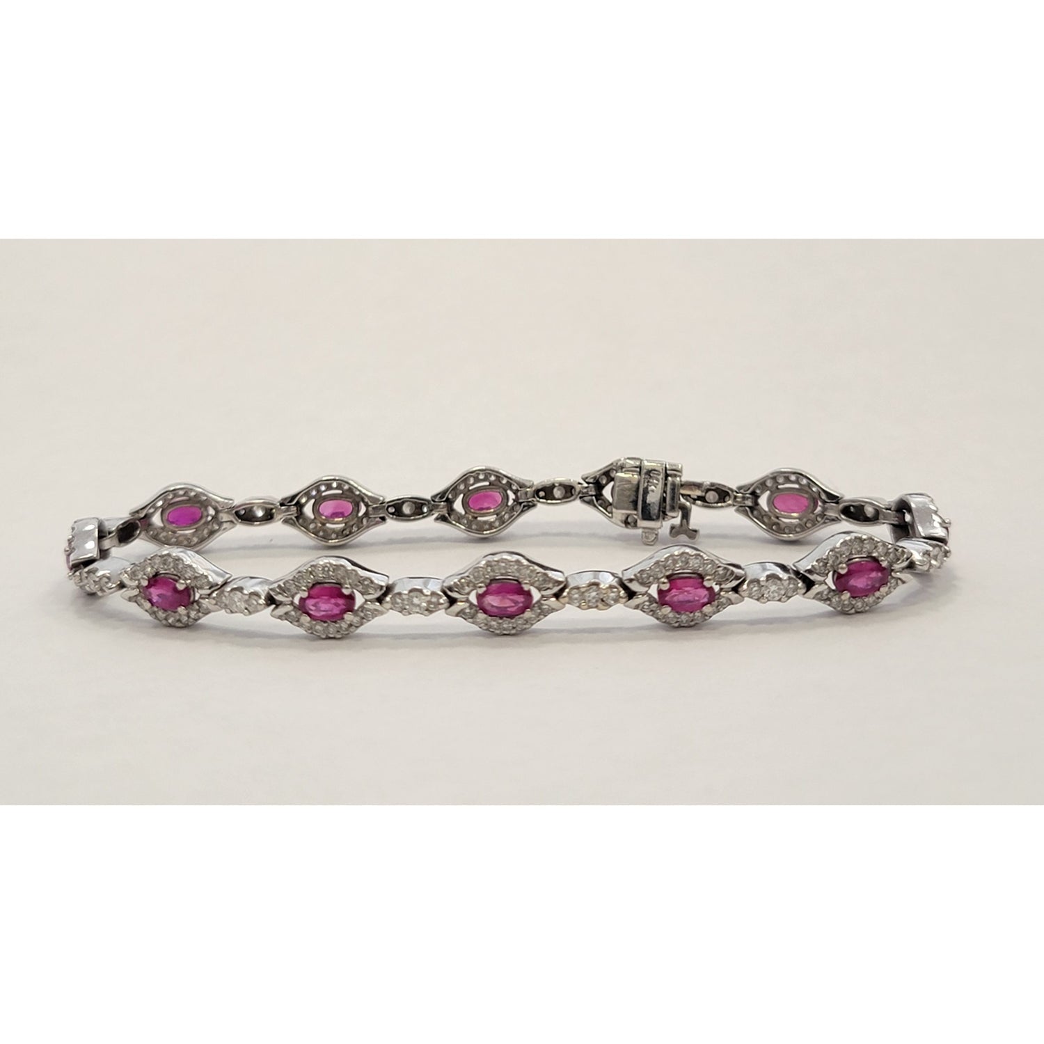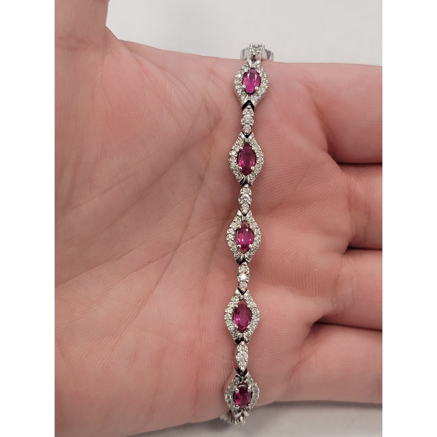 7in 3.5ctw Natural Ruby and 1.2ctw Diamond In 14kt White Gold Bracelet