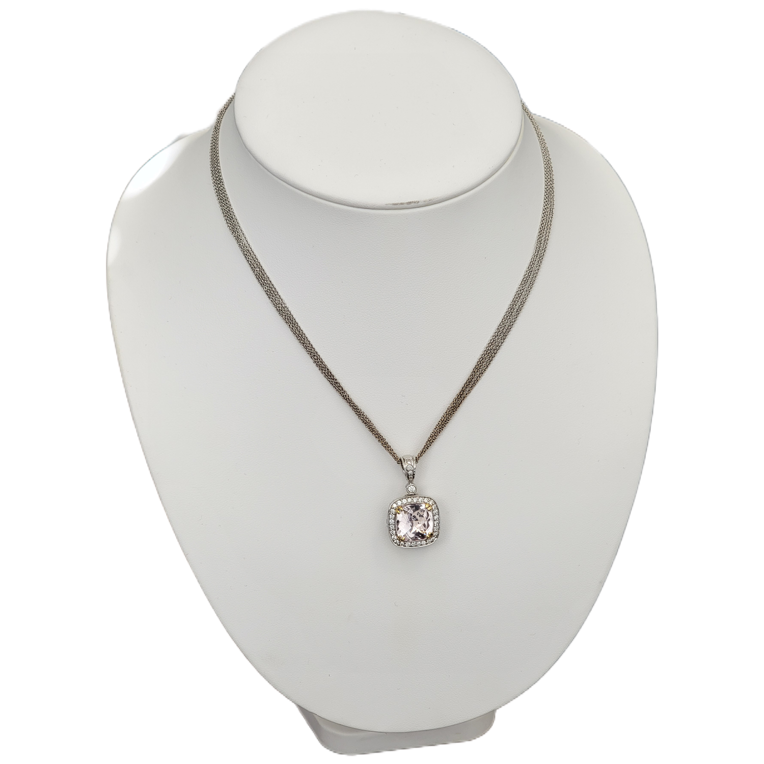 Elegant Charles Krypell necklace featuring 6.58ctw morganite and 1.55ctw diamonds, set in 16.7g of lustrous 18kt white gold with a 16-inch length. A luxurious, sparkling statement piece that exudes timeless sophistication.