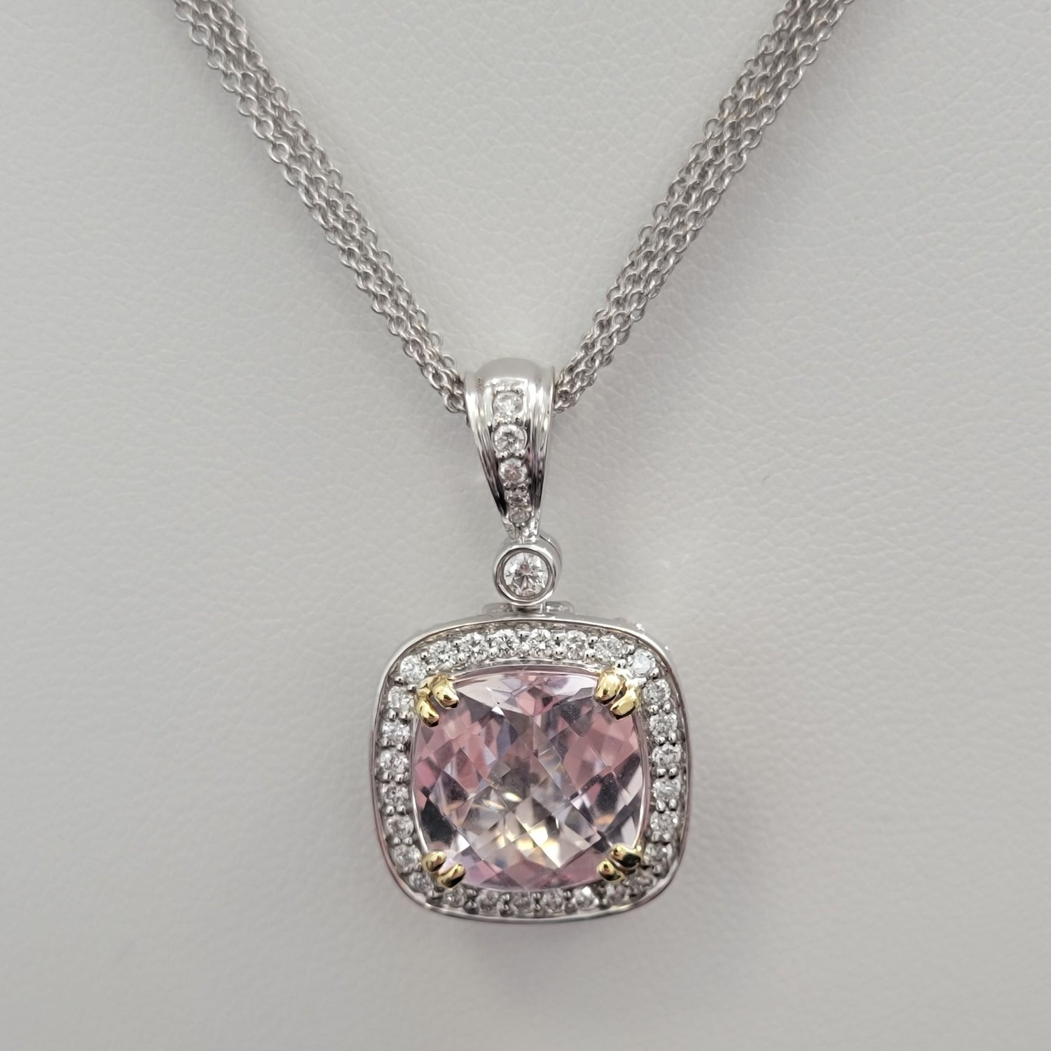 Charles Krypell 16.7g 18kt White Gold 16in 6.58ctw Morganite & 1.55ctw Diamond Necklace