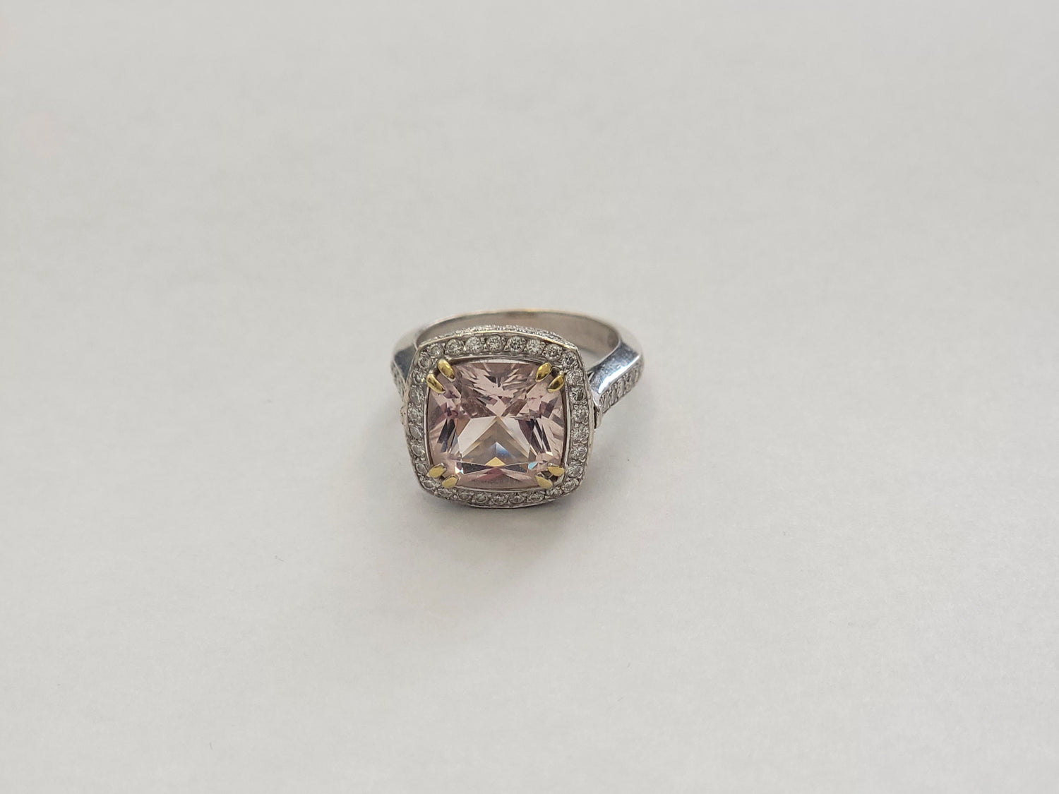 Charles Krypell 5ctw Pink Morganite & 1.16ctw Diamond In 18kt White Gold 10.2g Ring size 6.75
