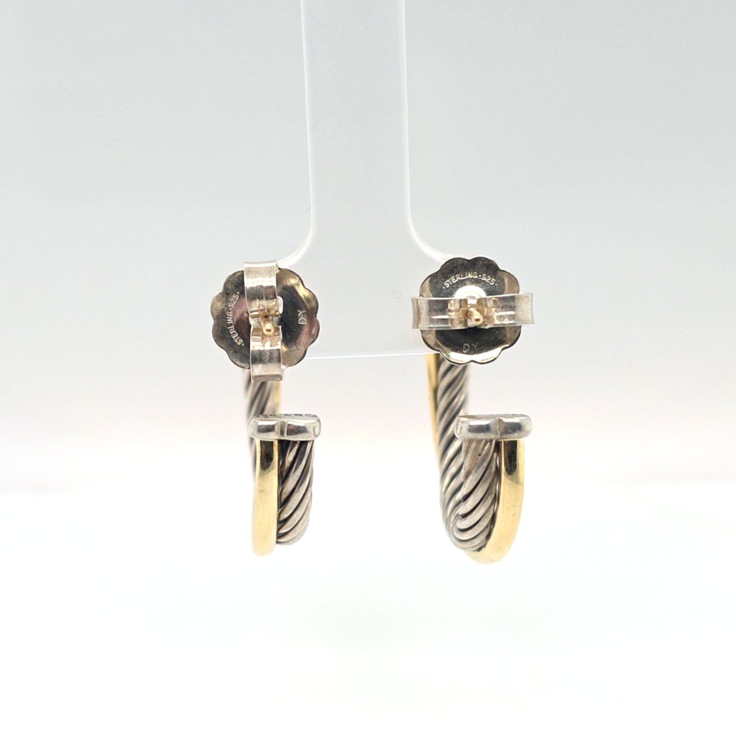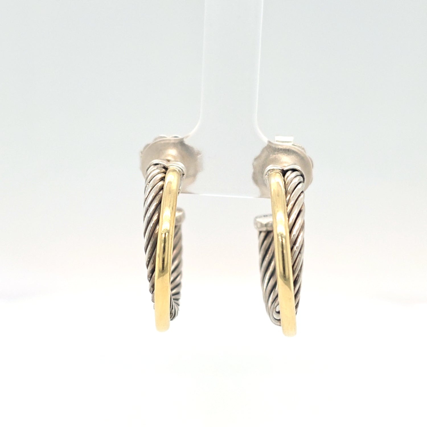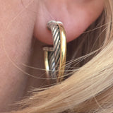 David Yurman Cross Hoop Earrings In Sterling Silver & 18kt Yellow Gold