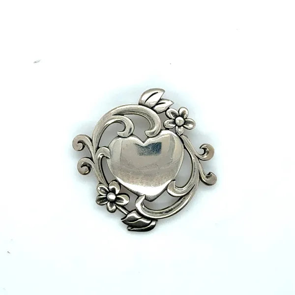 James Avery Sterling Silver Heart & Flowers Pin