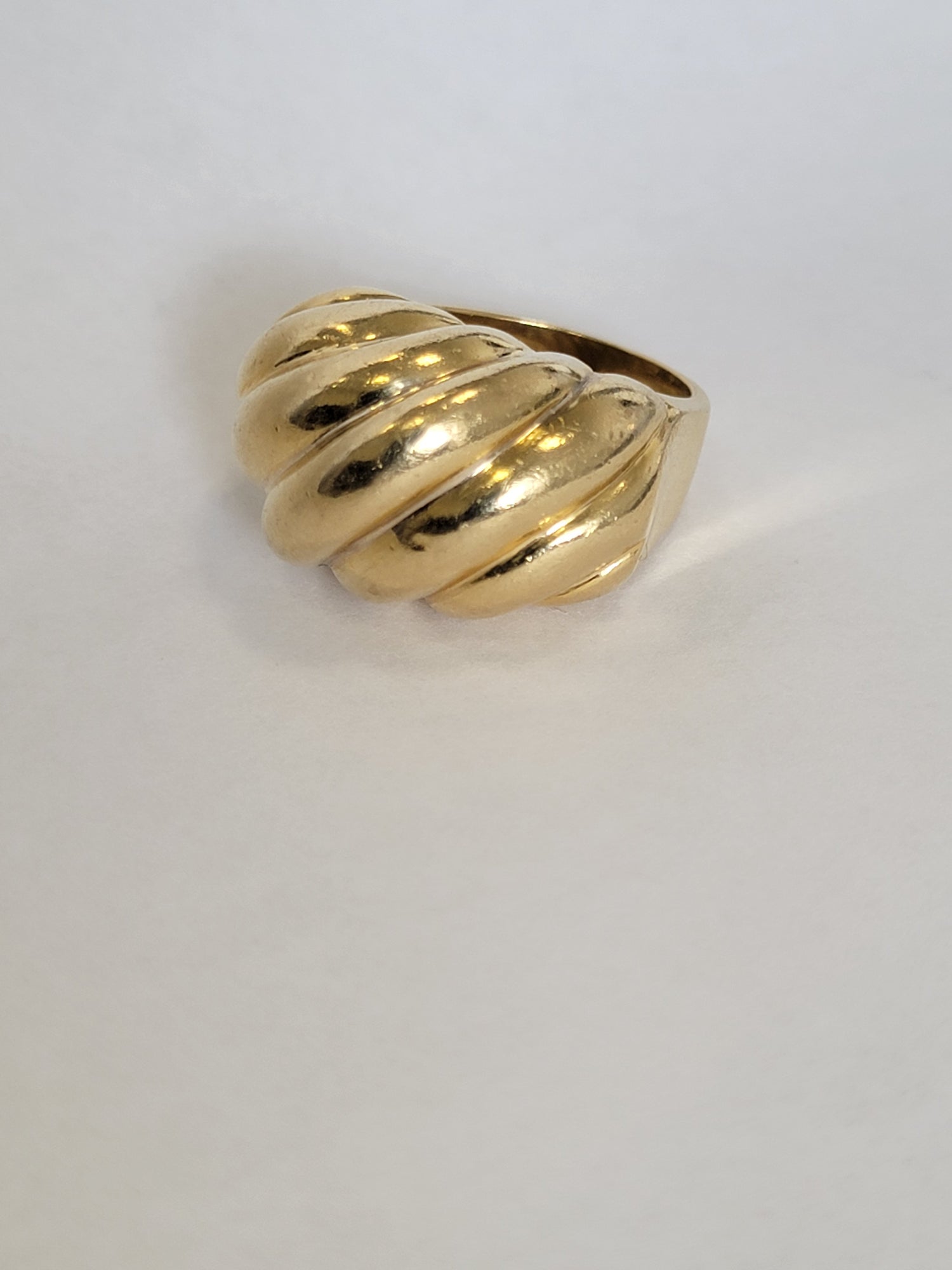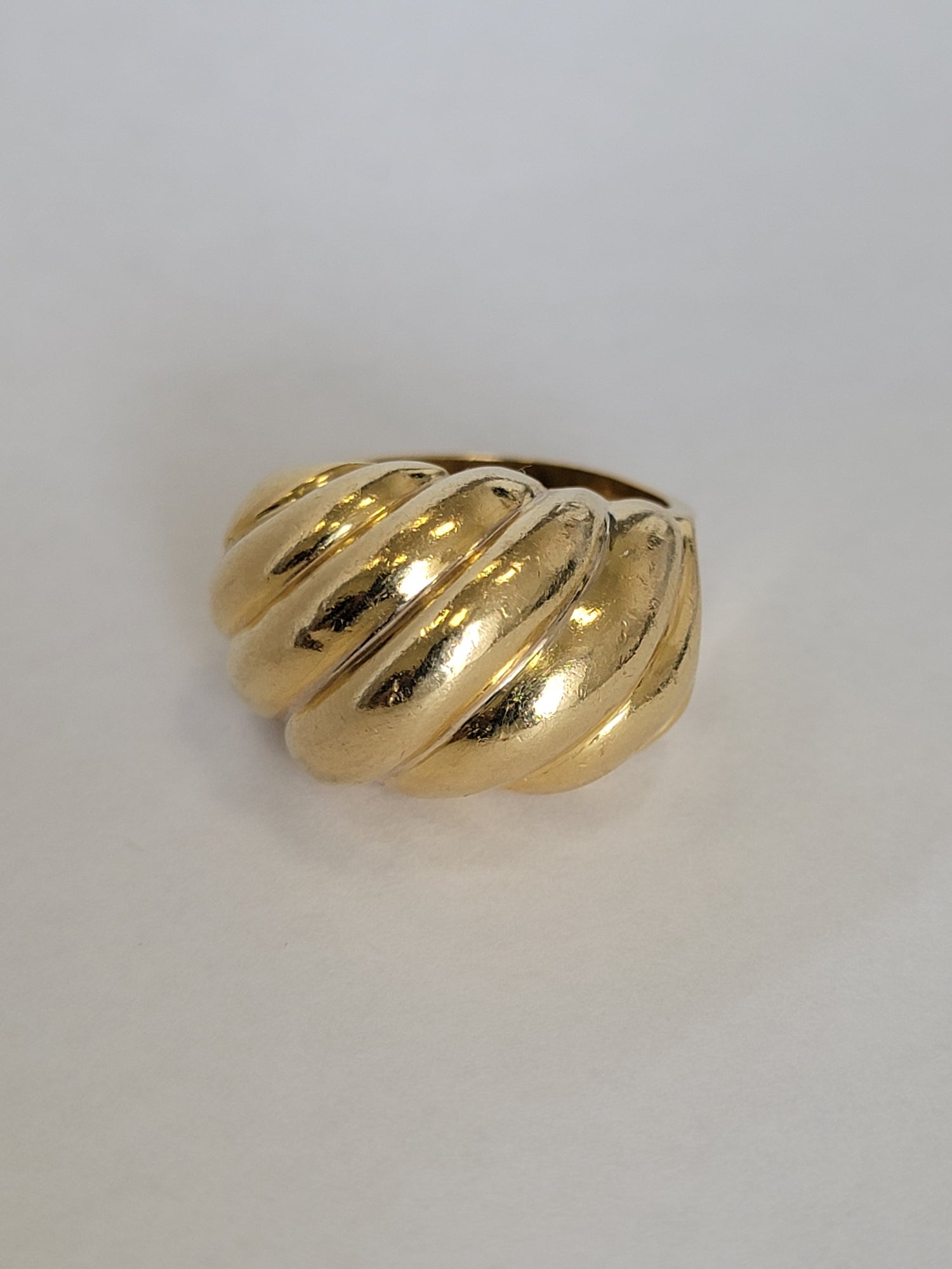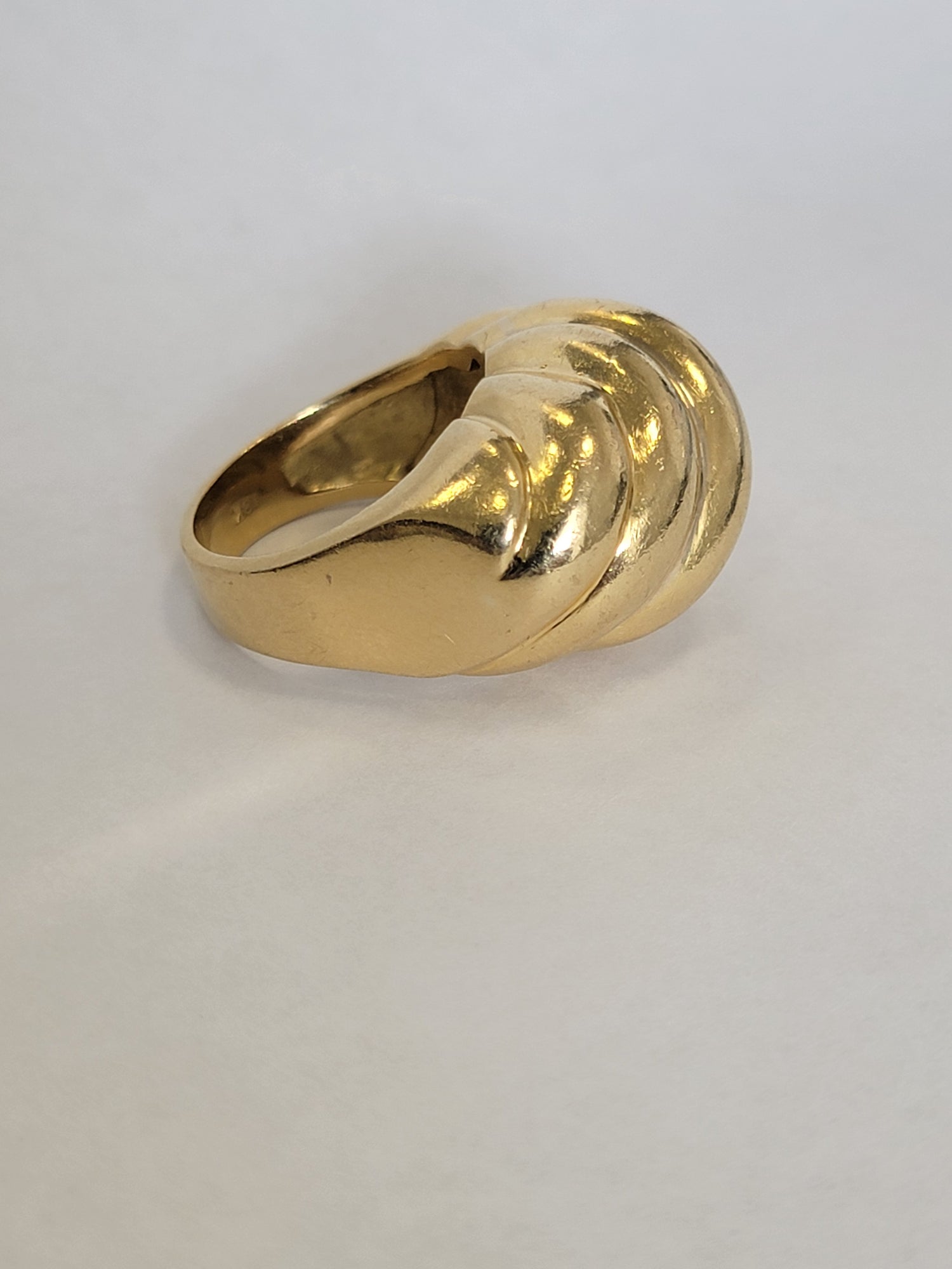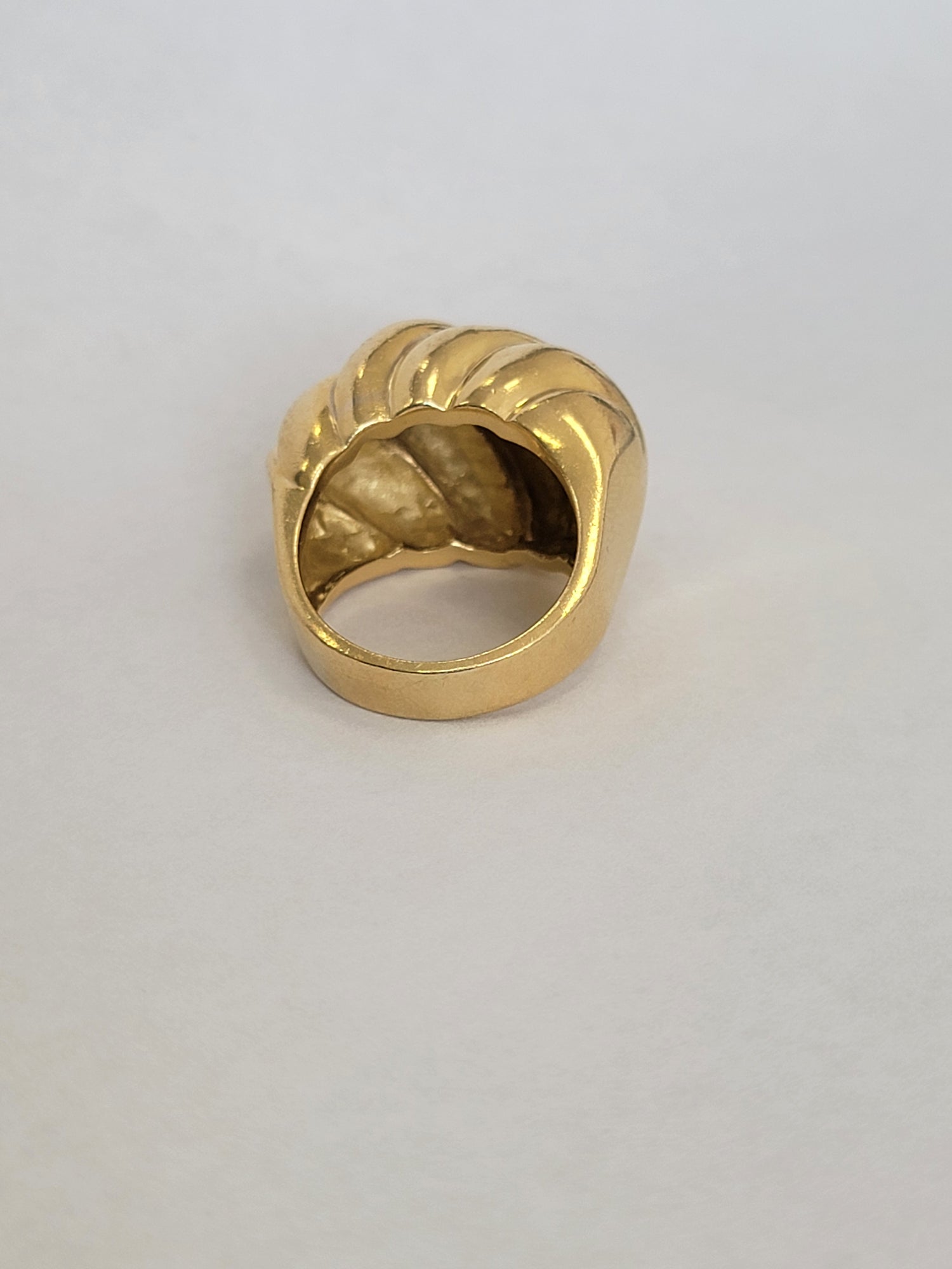 This bold 18kt gold ring makes a powerful statement with its substantial 19.76-gram weight and luxurious presence. Crafted in rich, high-purity gold and sized at 8.5, it offers both impressive durability and timeless style. A standout piece perfect for those who appreciate confident, elevated design.