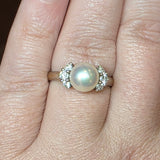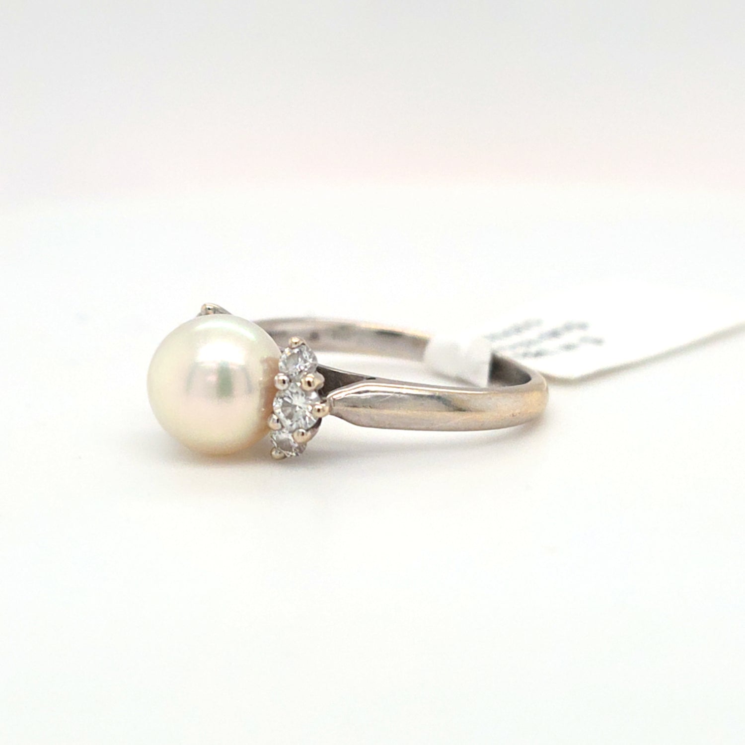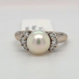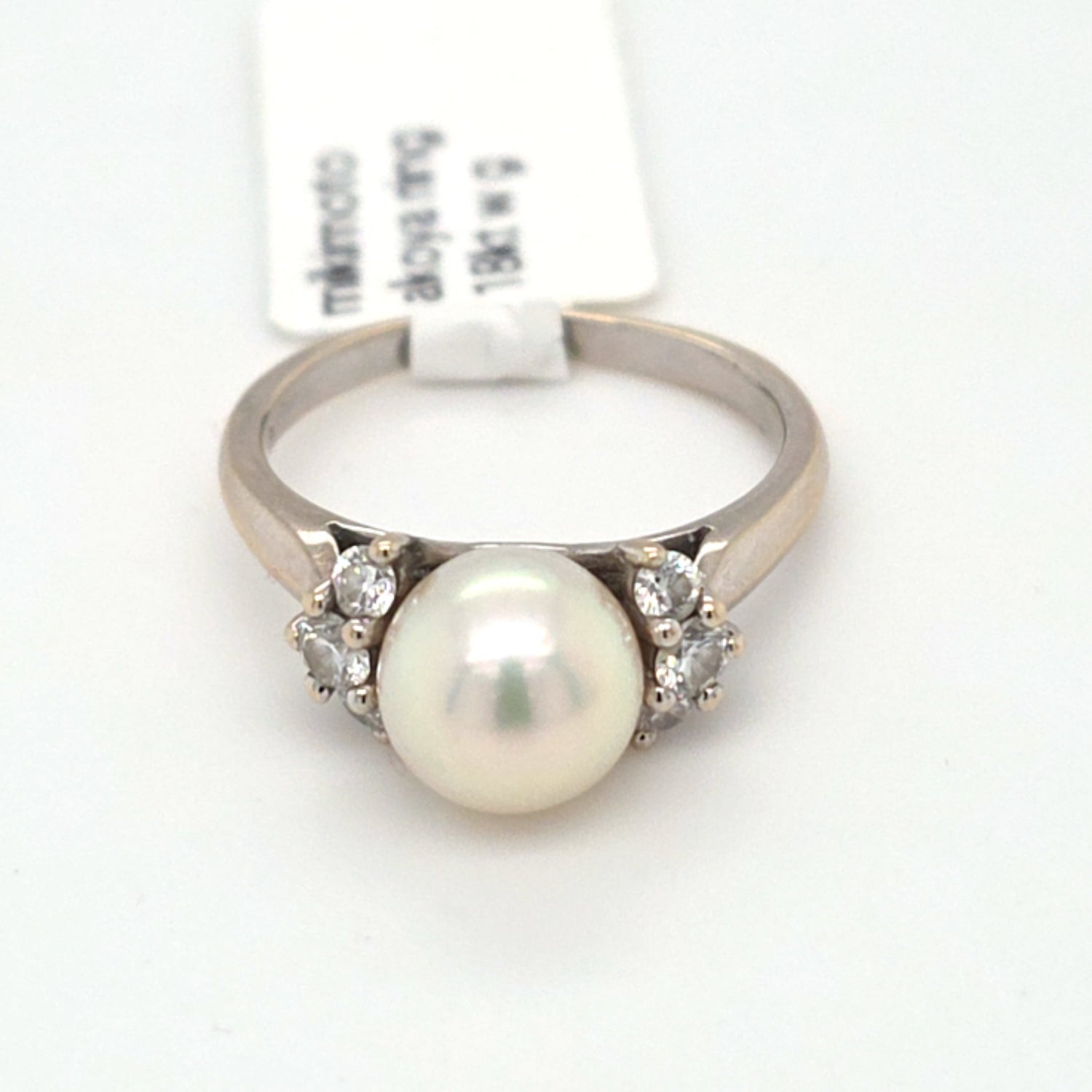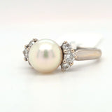 Mikimoto Akoya Pearl and Diamond Ring In 18kt White Gold