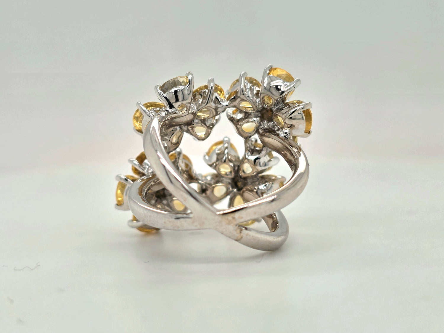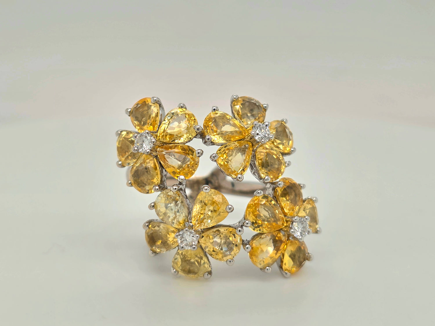 Natural 11.22ctw Yellow Sapphire Flower Ring With .24ctw Diamond accents In 18kt White Gold Size 5.75
